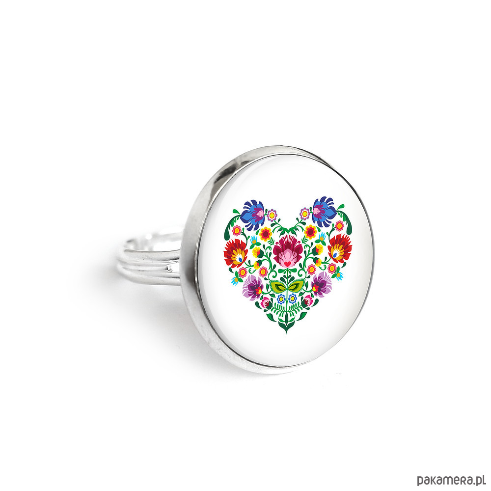 Grafika ukryta w prostym pierścieniu pod osłoną przeźroczystego półokrągłego szkiełka.