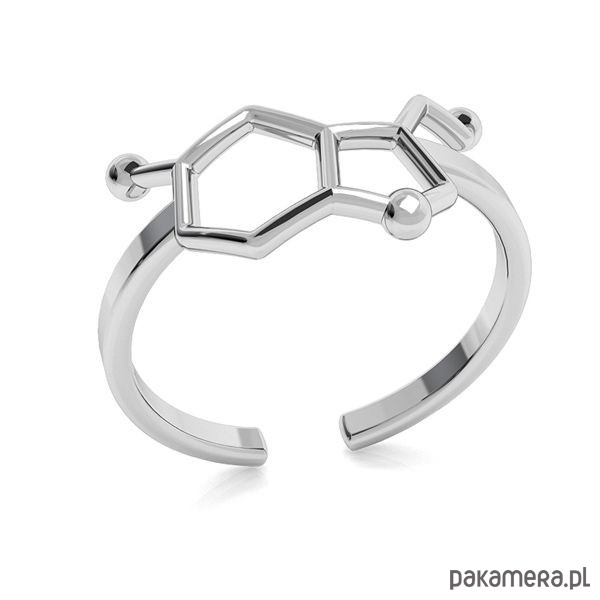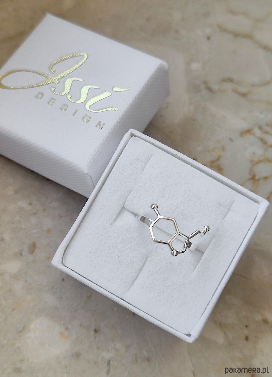 Delikatny pierścionek ze wzorem strukturalnym serotoniny, wykonany ze srebra próby 925.