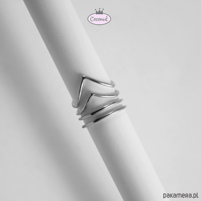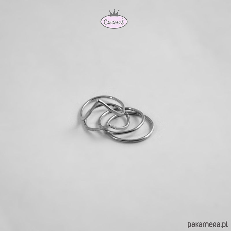 Pierścionek składający się z 4 cienkich młotkowanych (nierównych) obrączek ze srebra,