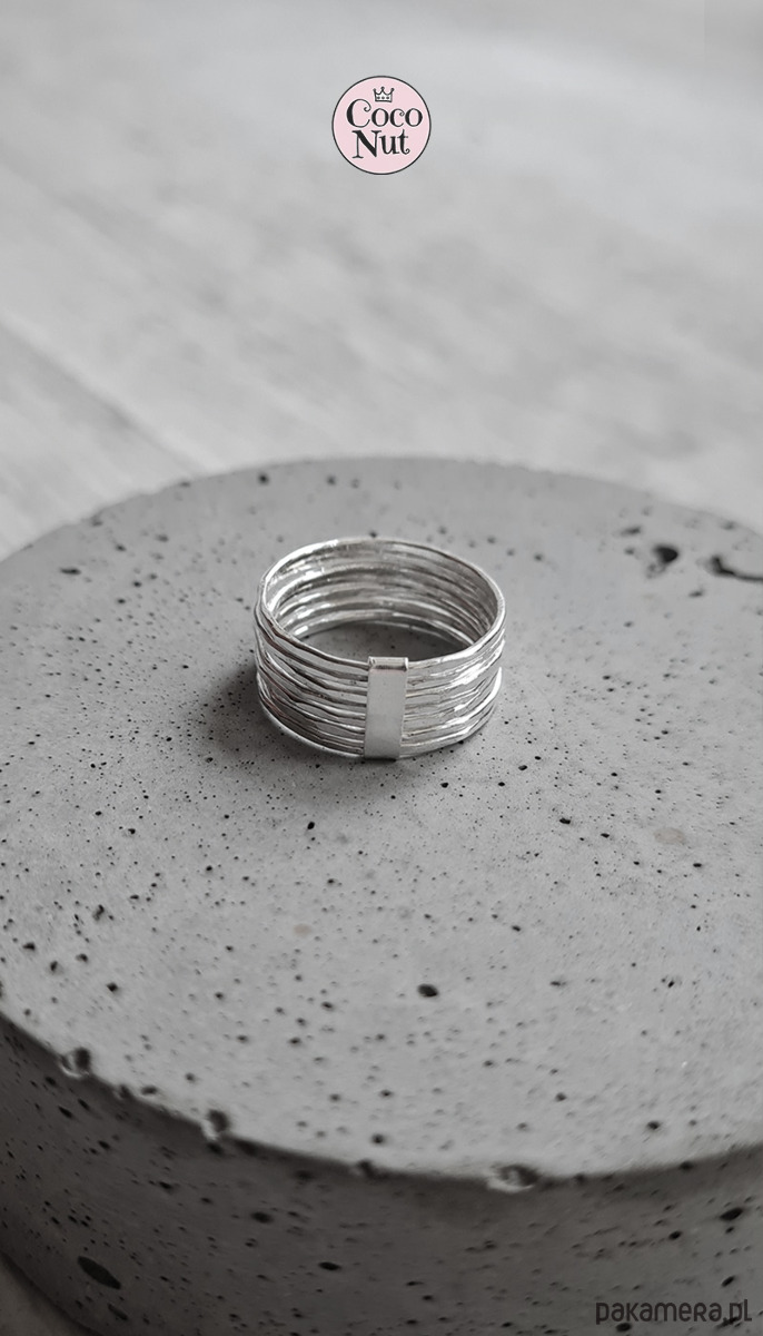 Komplet 7 cienkich młotkowanych (nierównych) obrączek ze srebra o szerokości ok. 1 mm,