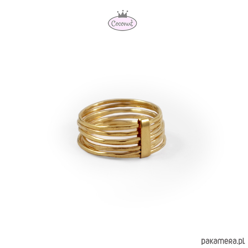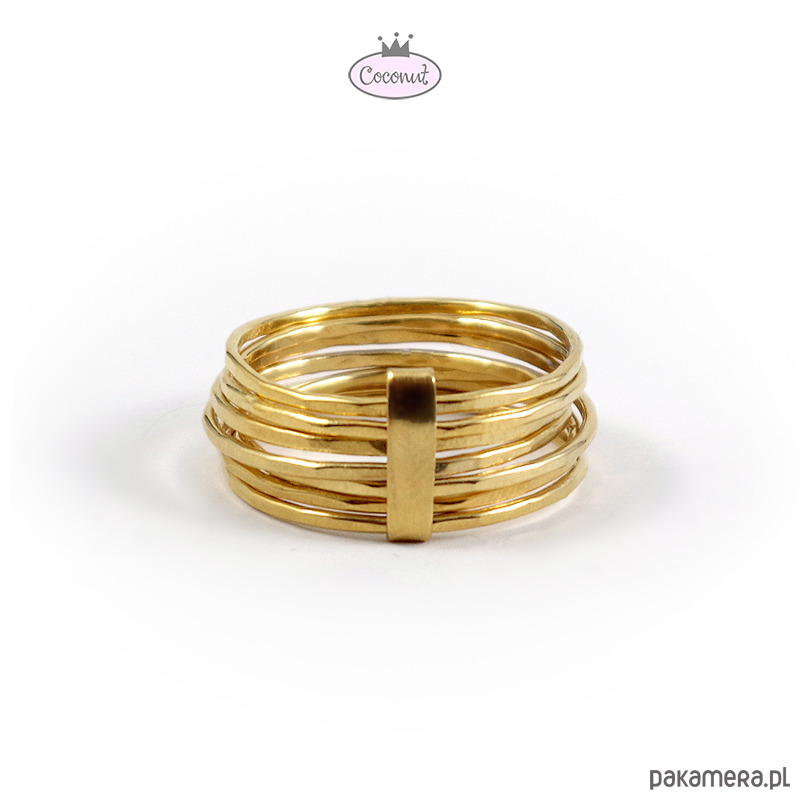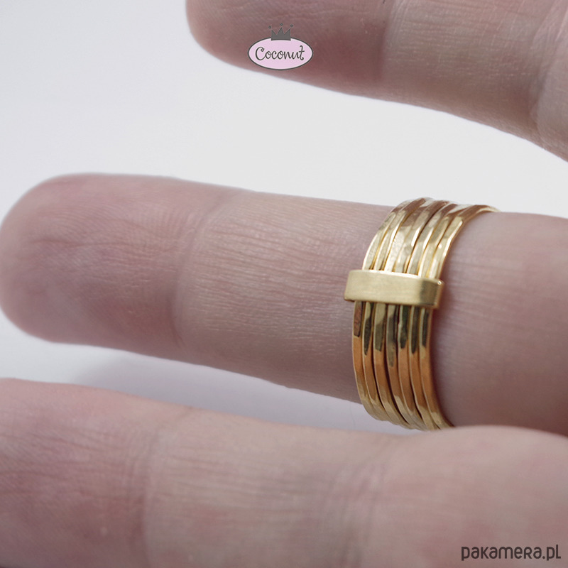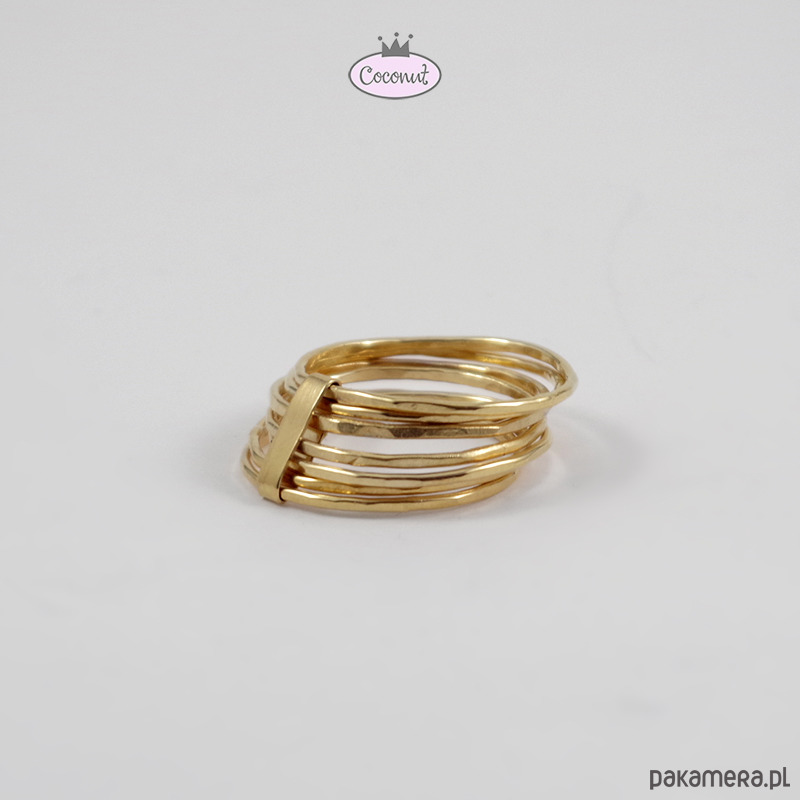Komplet 7 cienkich młotkowanych (nierównych) obrączek ze srebra (srebro złocone = pokryte cienką warstwą złota) o szerokości ok. 1 mm,