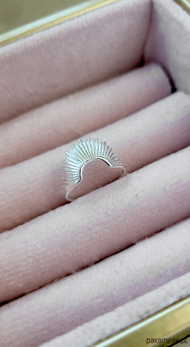 Delikatny pierścionek ze słońcem, wykonany ze srebra próby 925.
