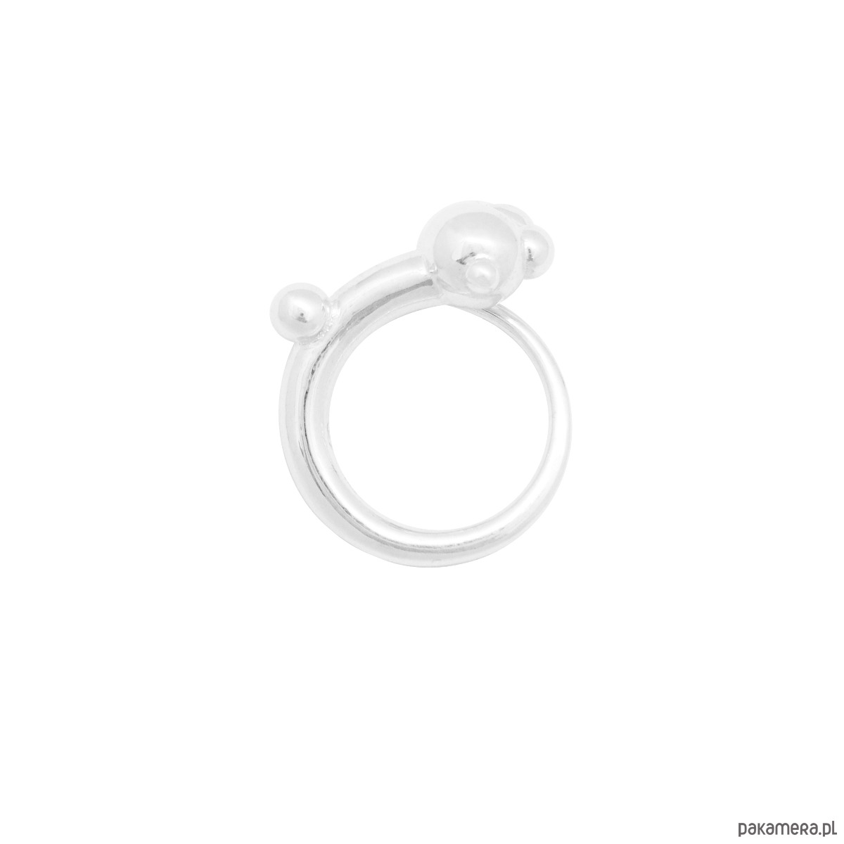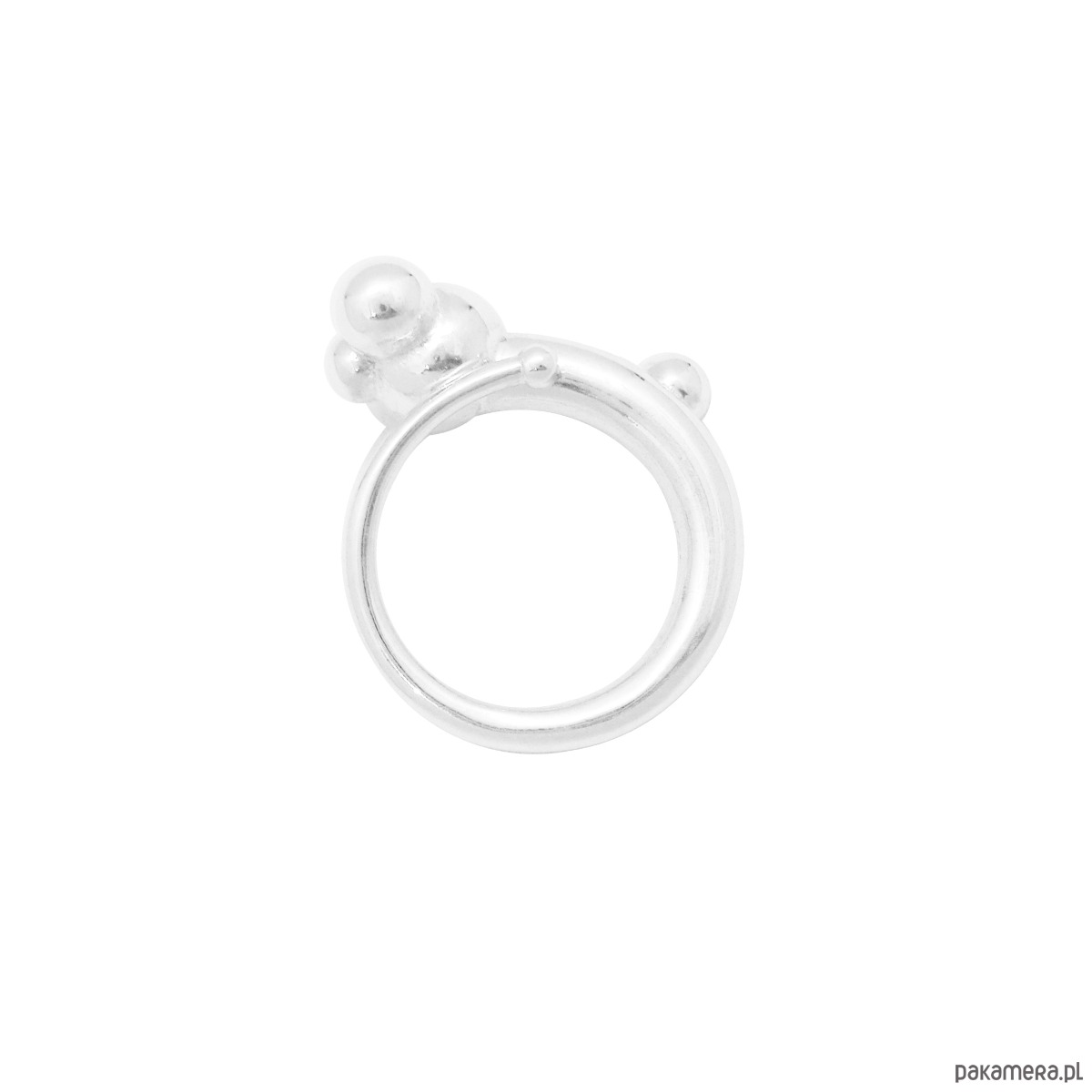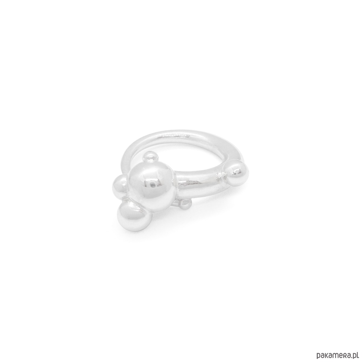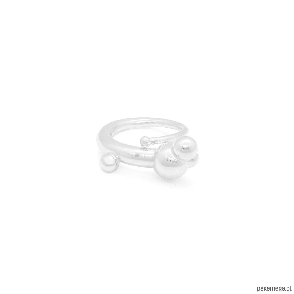 Pierścionek SPHERE big z kolekcji SPHERE to duża, regulowana, rozszerzająca się obrączka z przenikającymi się kulkami. Pierścionek posiada możliwość regulacji rozmiaru.