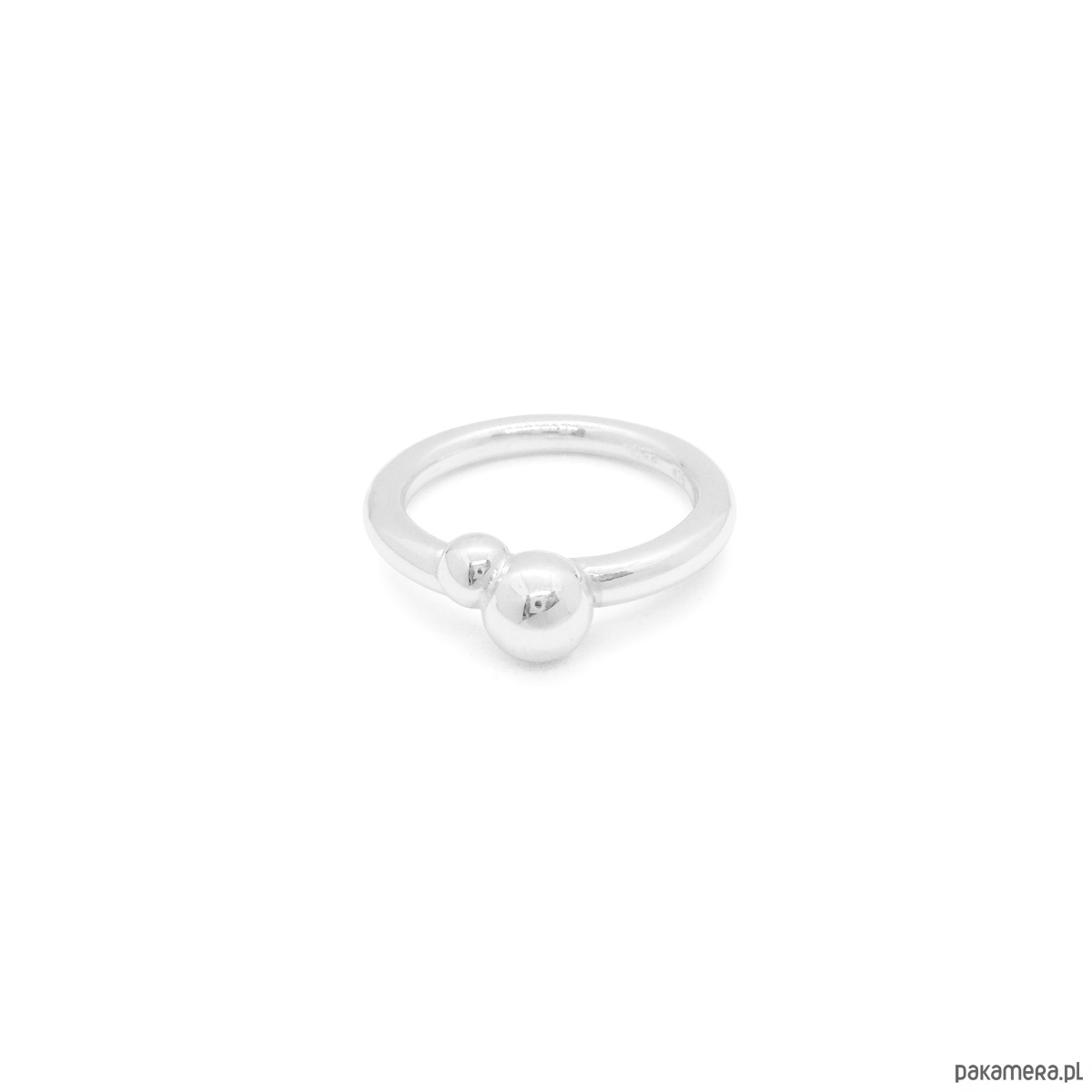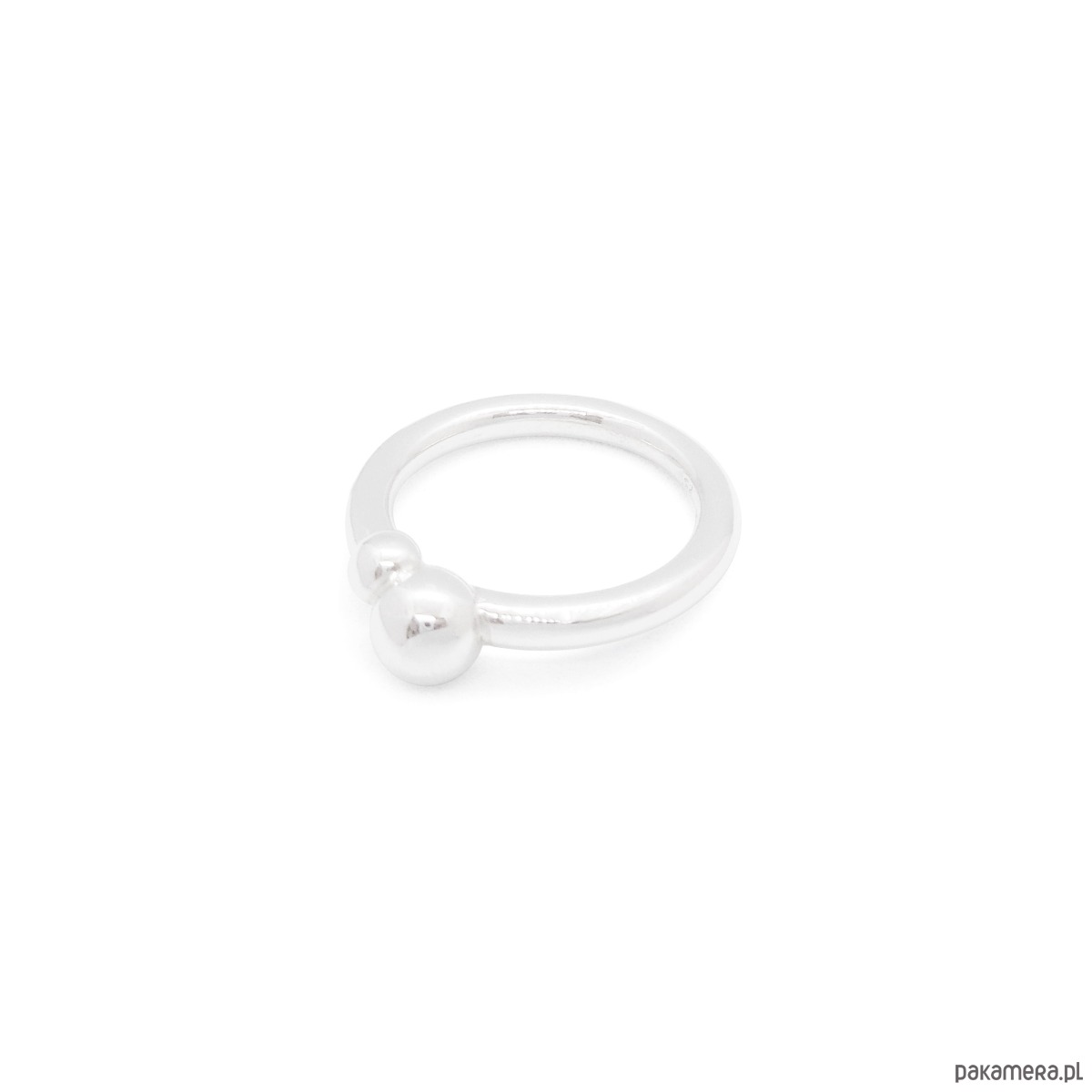 Obrączka ma średnicę 3 mm. Większa kulka ma wielkość 6 mm, a mniejsza 4 mm.