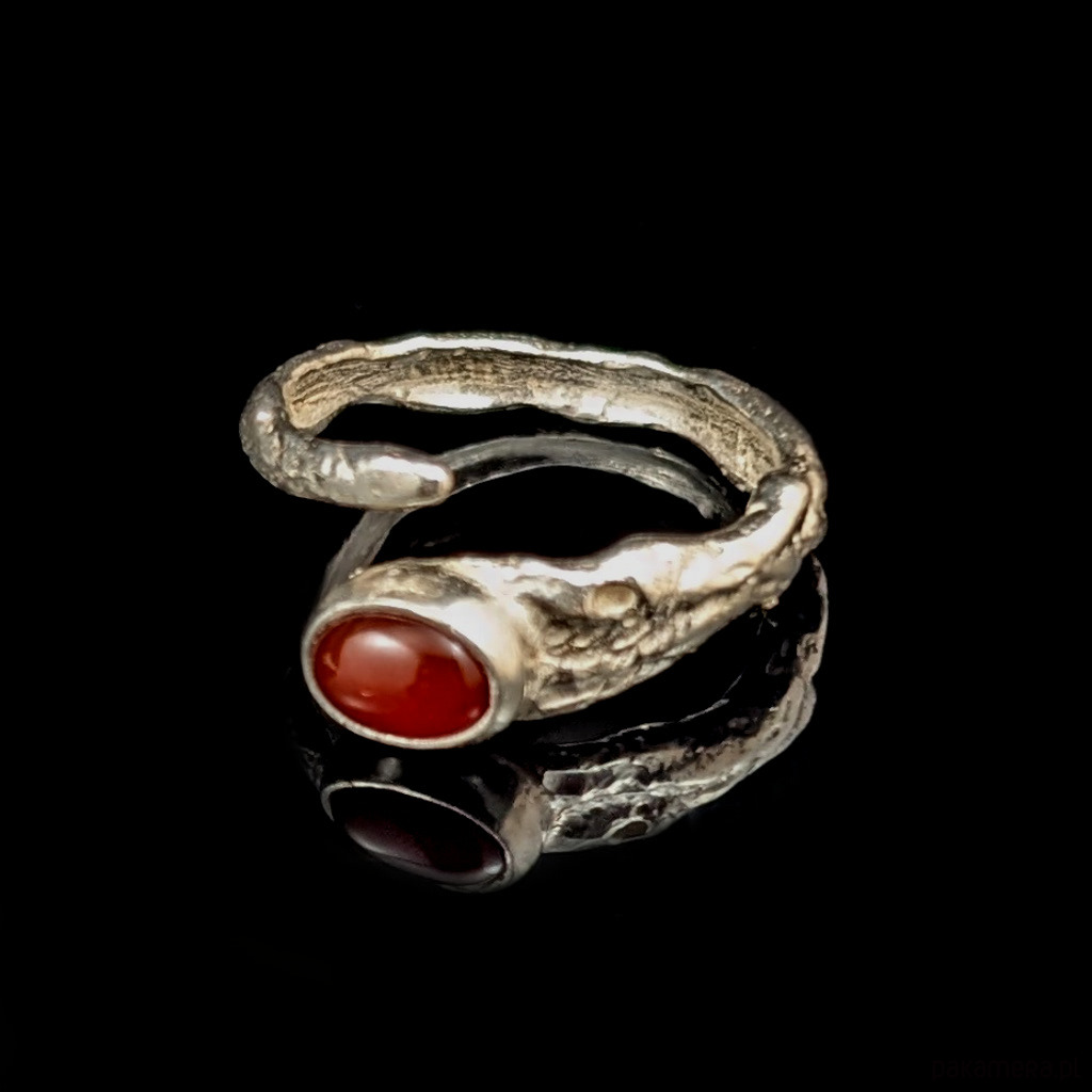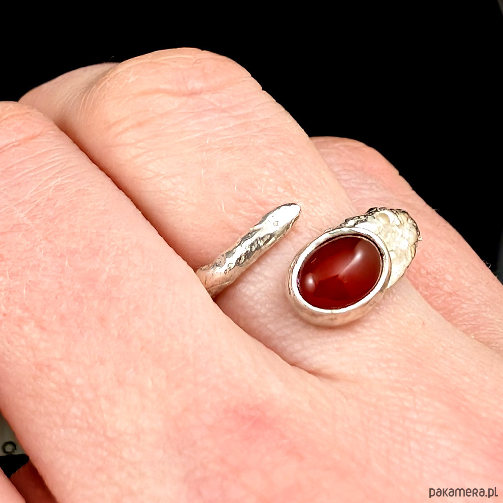 Ozdobą pierścionka jest karneol.