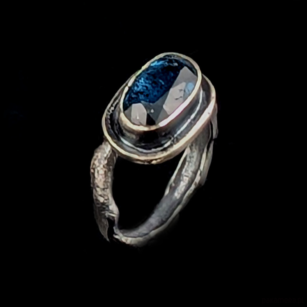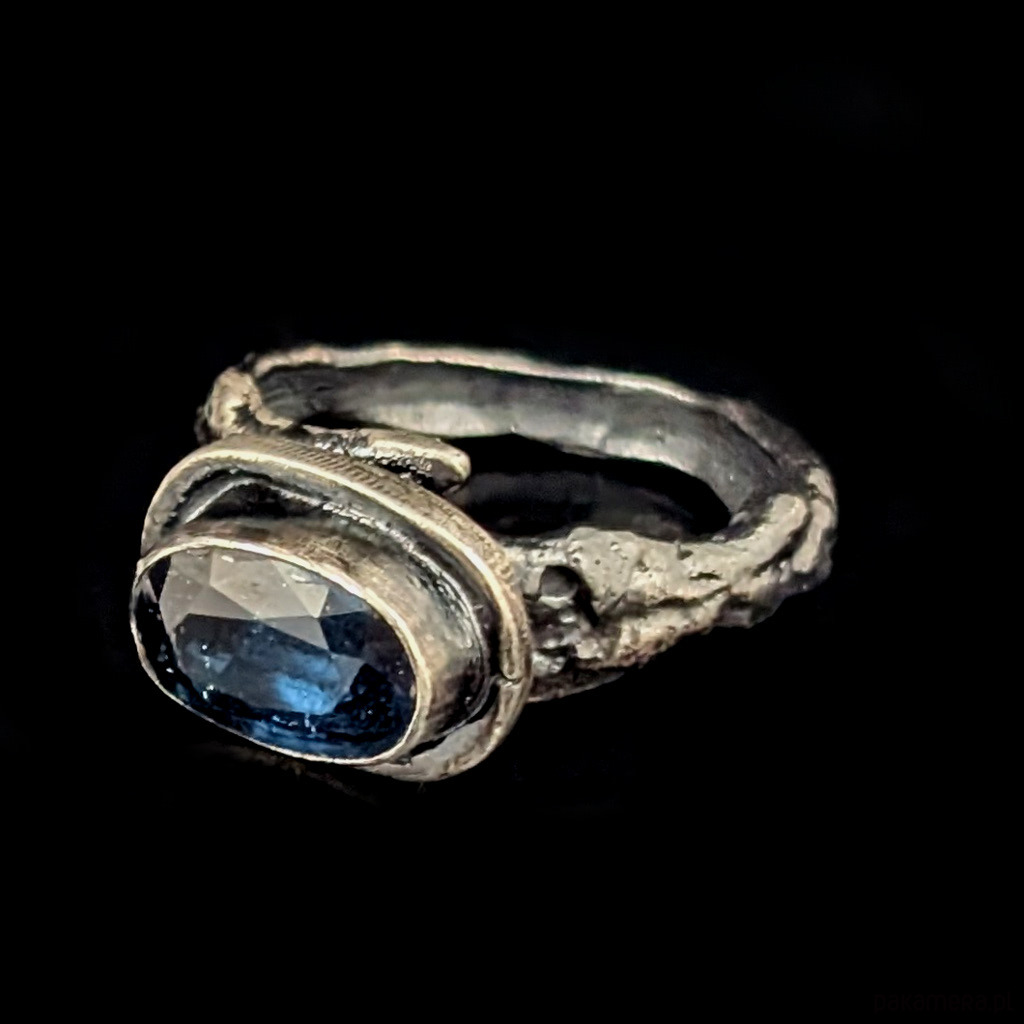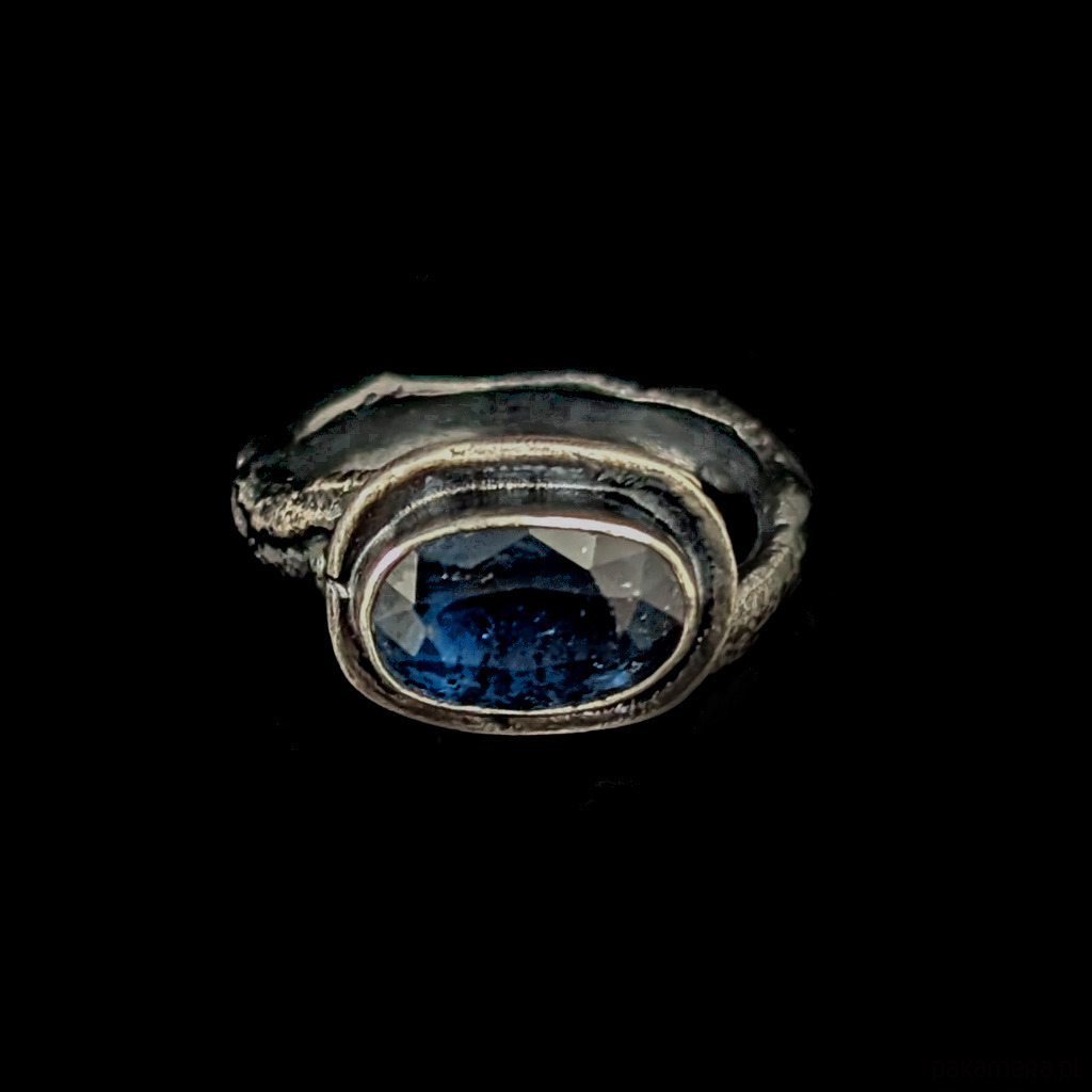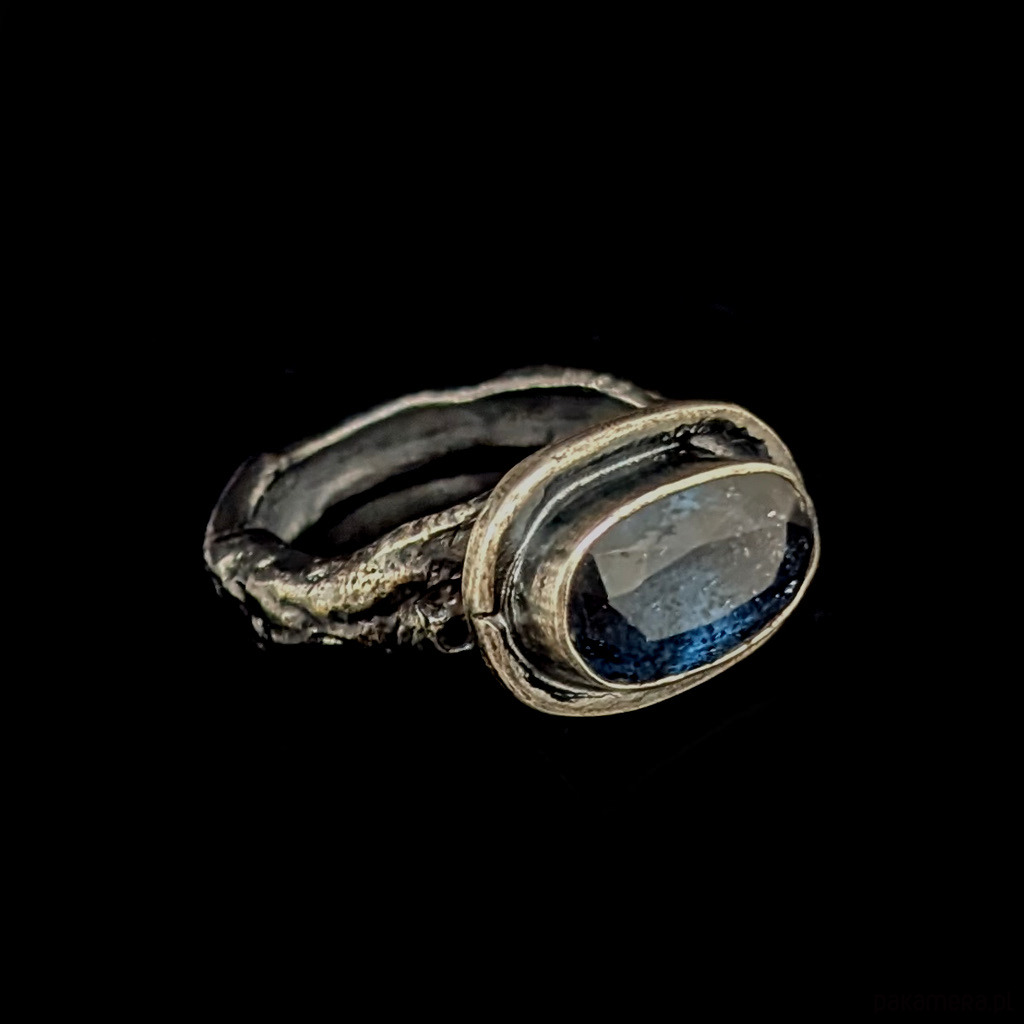 Pierścionek wykonany ze srebra próby 925, oksydowane, przetarte, fakturowane. Rozmiar pierścionka dzięki otwartej podstawie regulowany, z mogę dopasować na dowolny rozmiar w zakresie 9-23. Proszę napisać, na jaki ustawić. Ozdobą pierścionka jest piękny, świetlisty kyanit. Wymiary oprawy kamienia 14 x 11 mm, szerokość maksymalna obrączki 6 mm, min. 4 mm. Waga 6,16 g. Pierścień zostanie zapakowany w ozdobne pudełeczko.