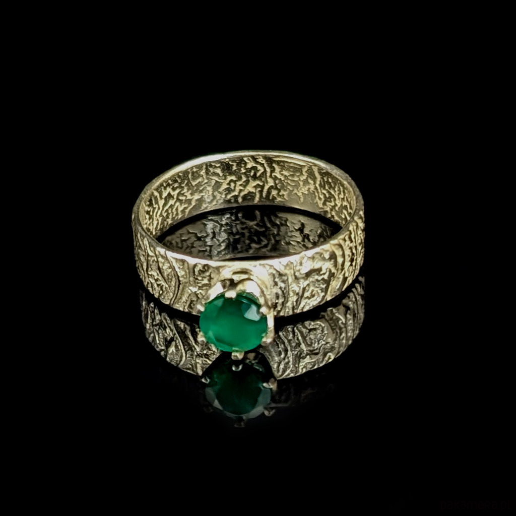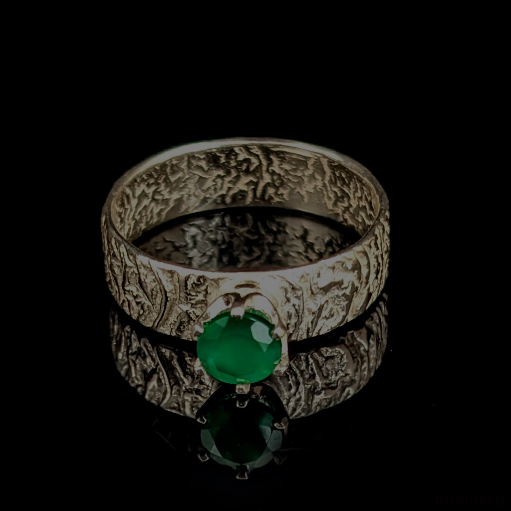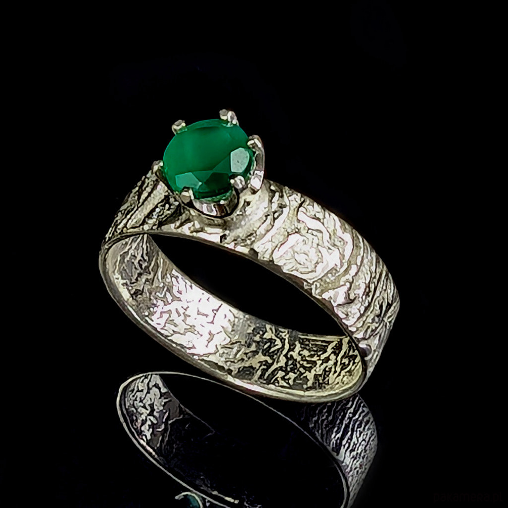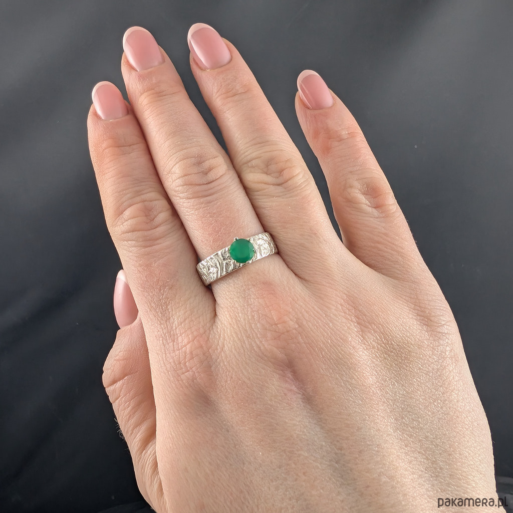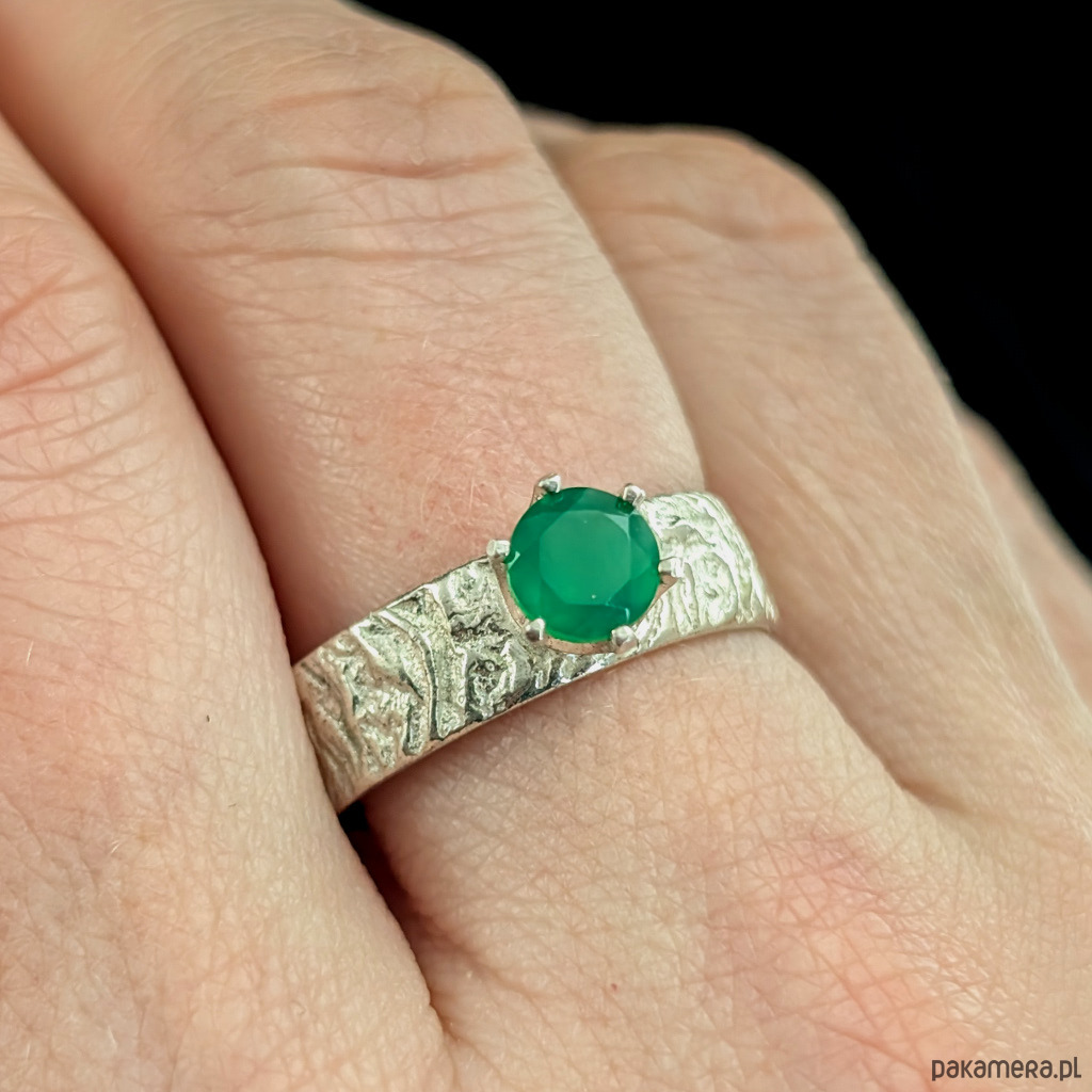 Kobiecy, subtelny pierścionek wykonany ze srebra pr. 925 oraz zielonego, fasetowanego agatu.