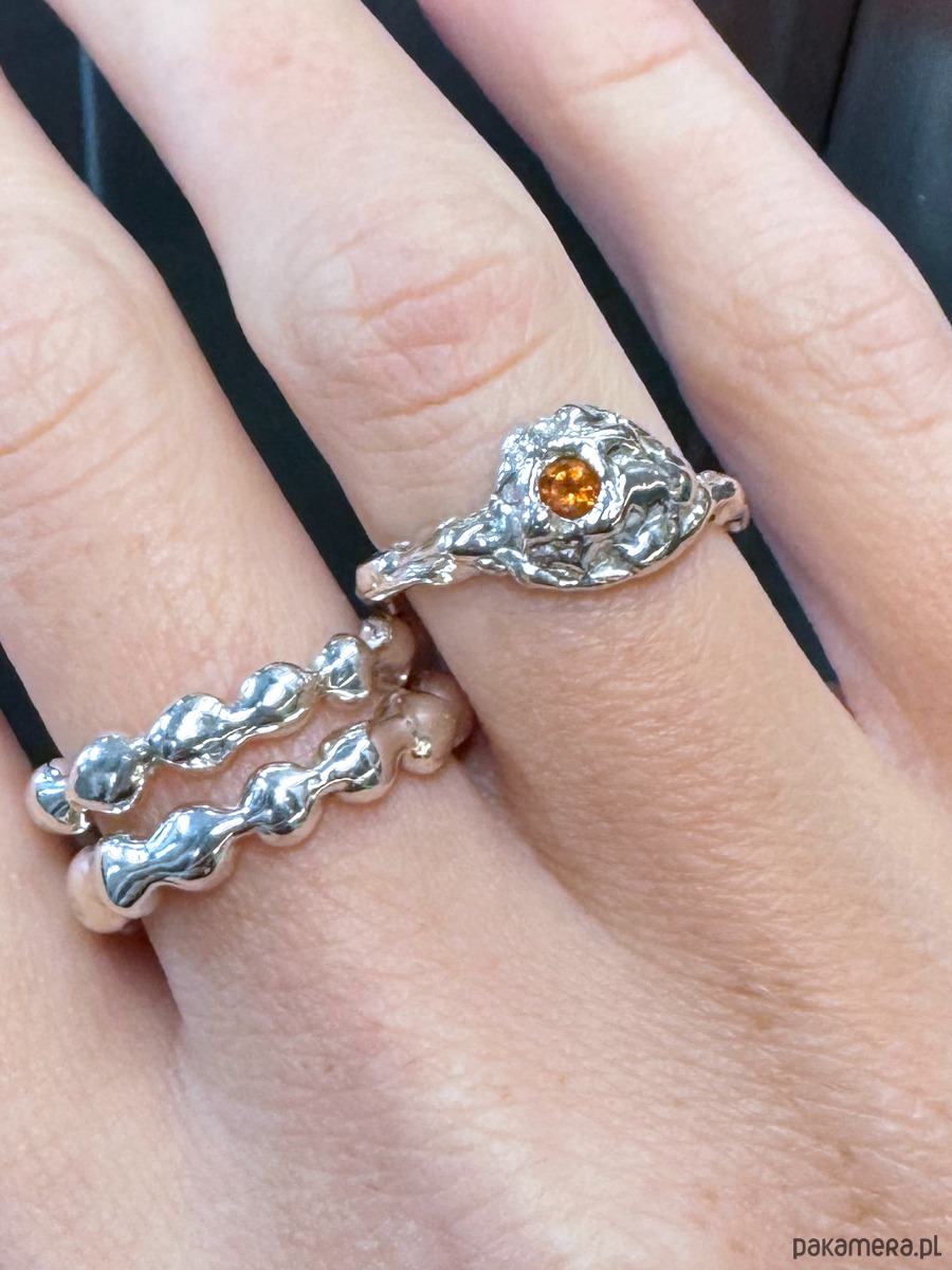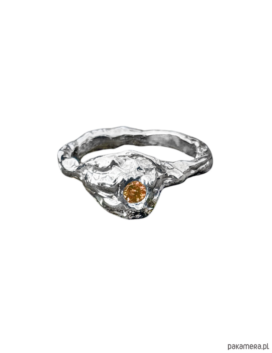 Pierścionek Figa wykonany ze srebra 925 i ozdobiony granatem hessonitem.