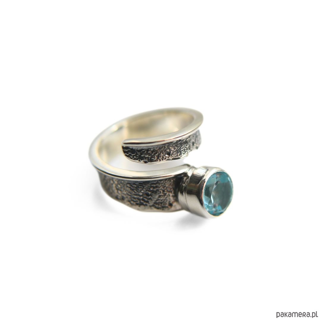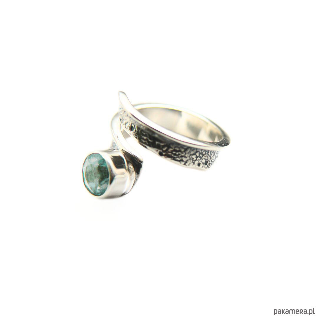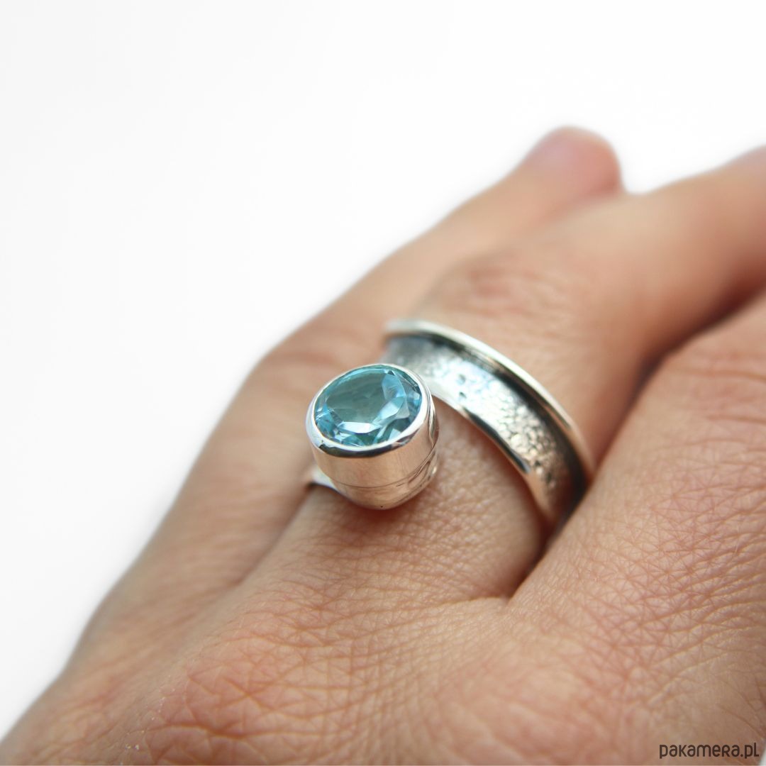 Pierścionek srebrny Modern z Akwamarynem, regulowany