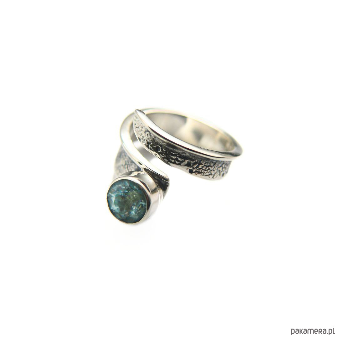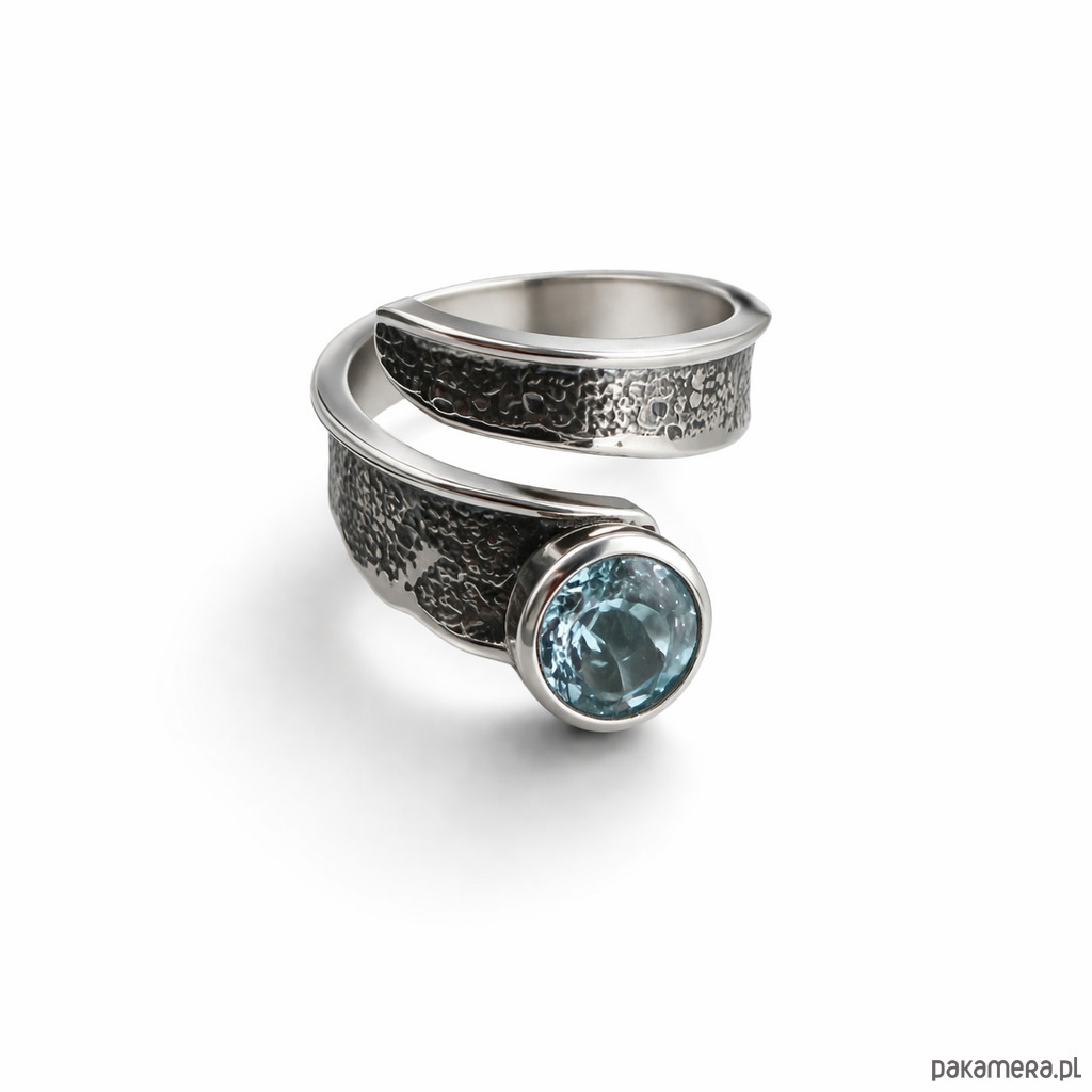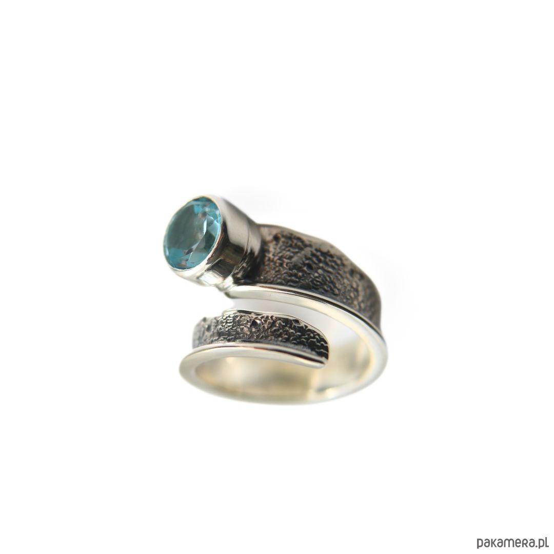 Pierścionek srebrny Modern z Akwamarynem, regulowany