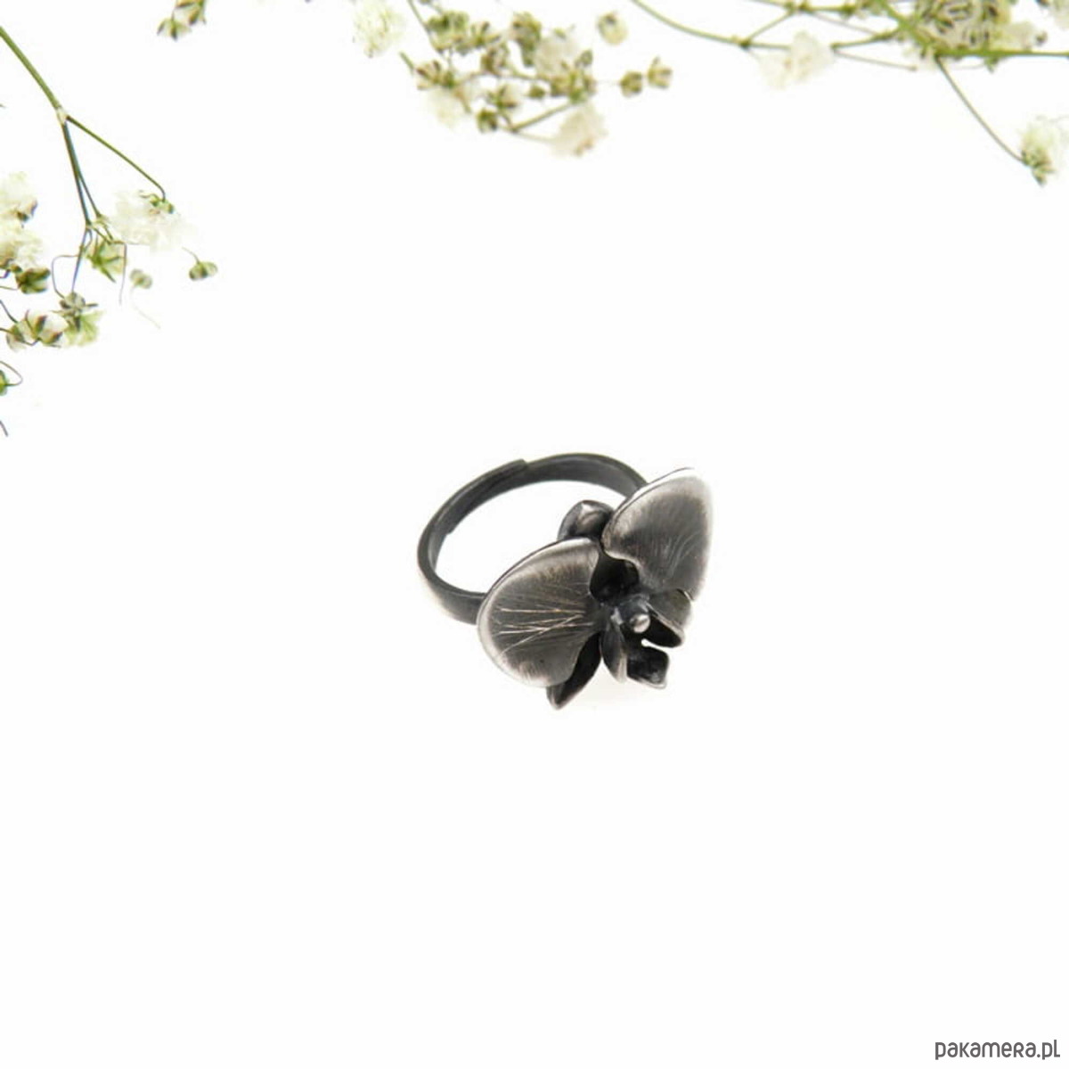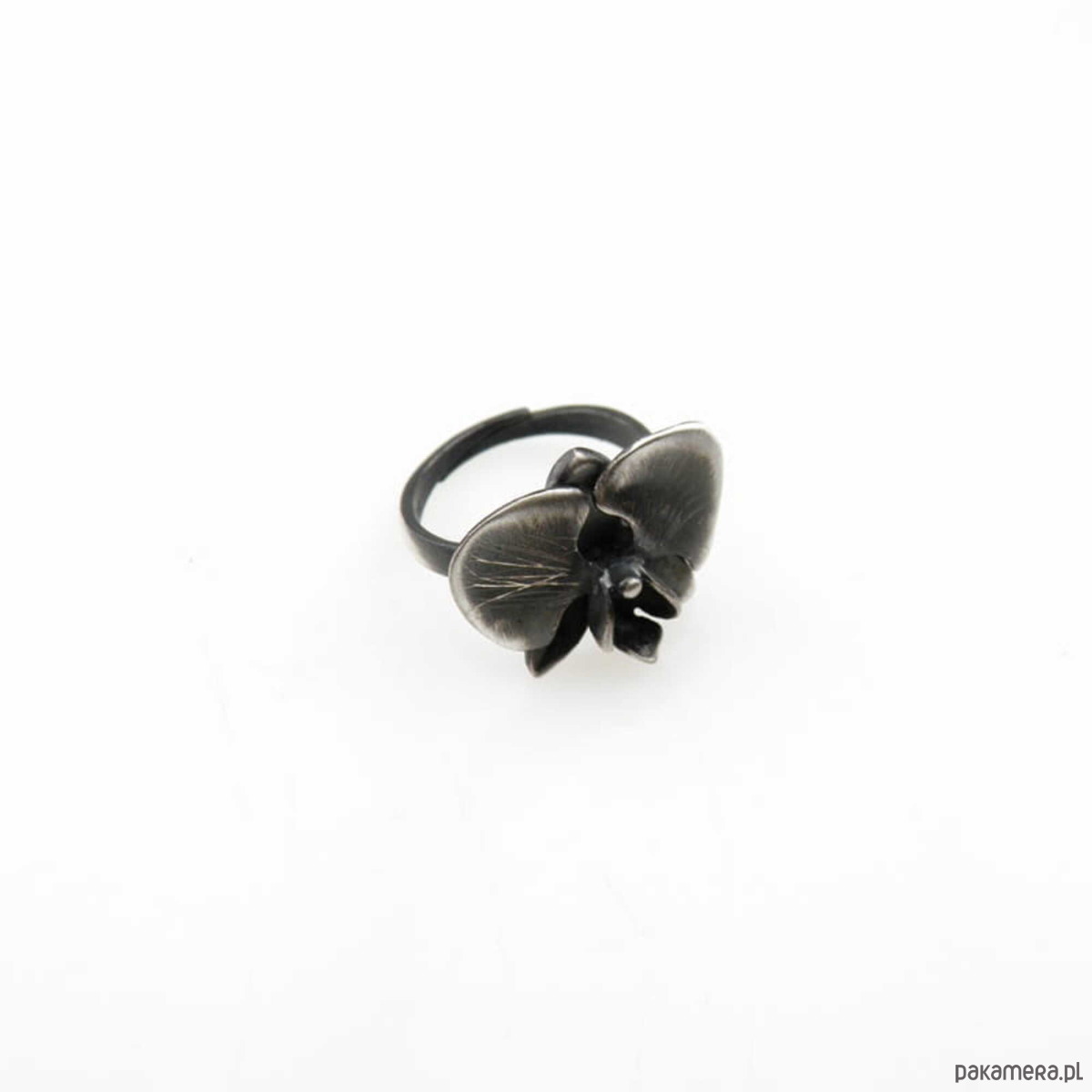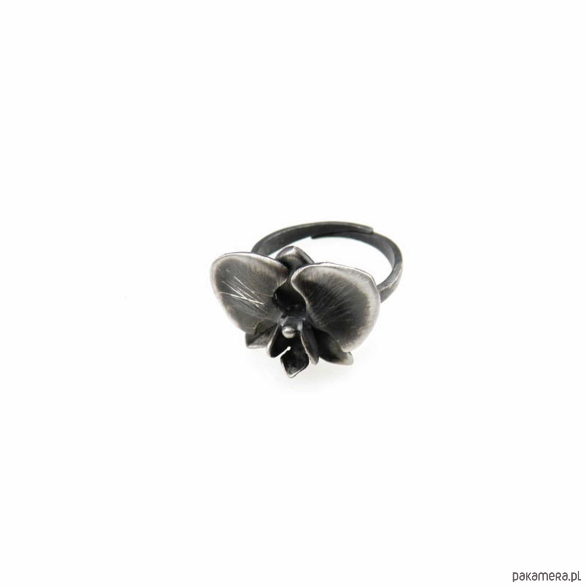 Pierścionek srebrny oksydowany- Orchidea mała regulowana