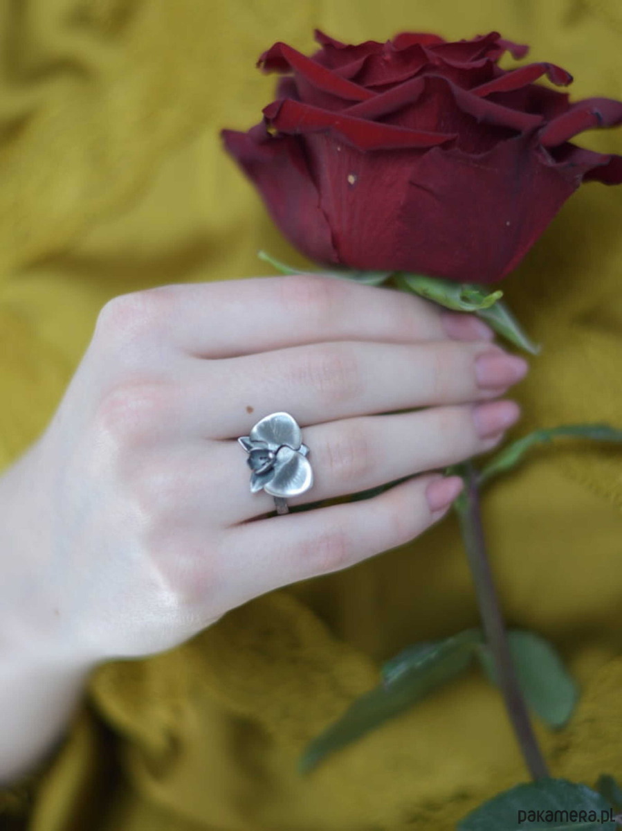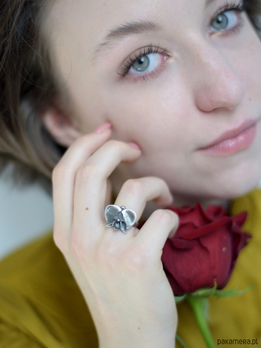 Odkryj delikatność i romantyzm dzięki naszemu zachwycającemu pierścieniowi z kwiatem orchidei.