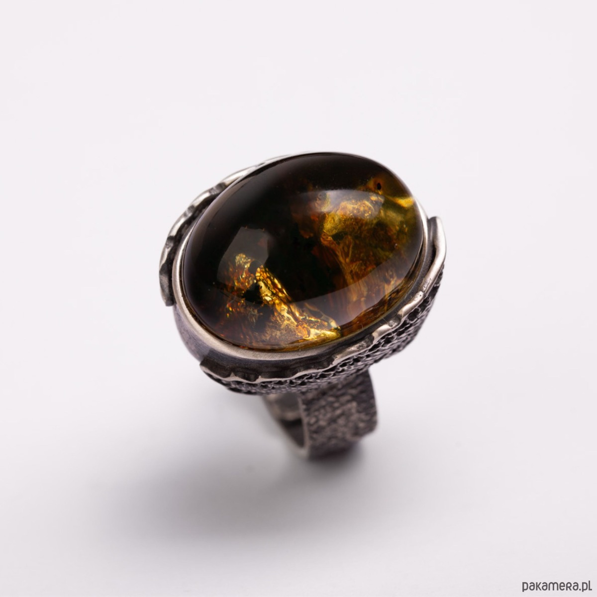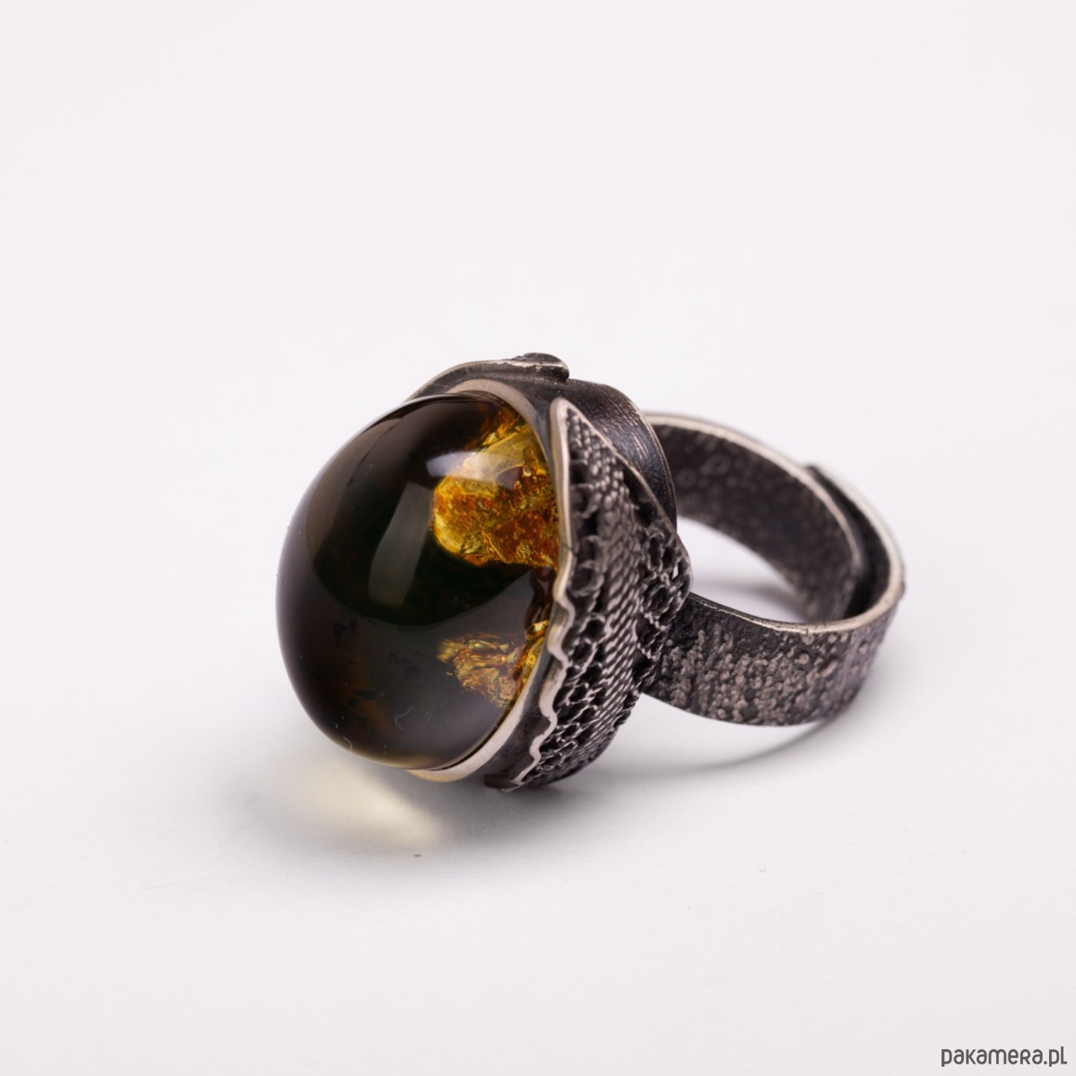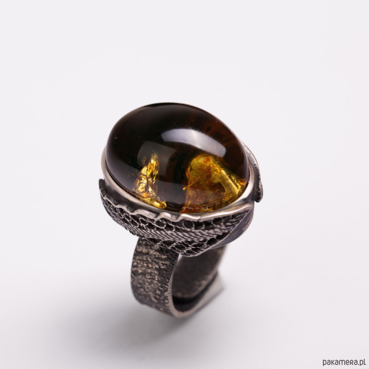 Pierścionek srebrny oksydowany z bursztynem bałtyckim