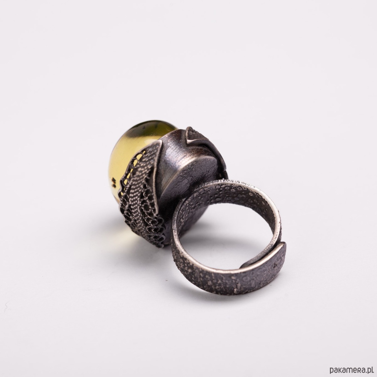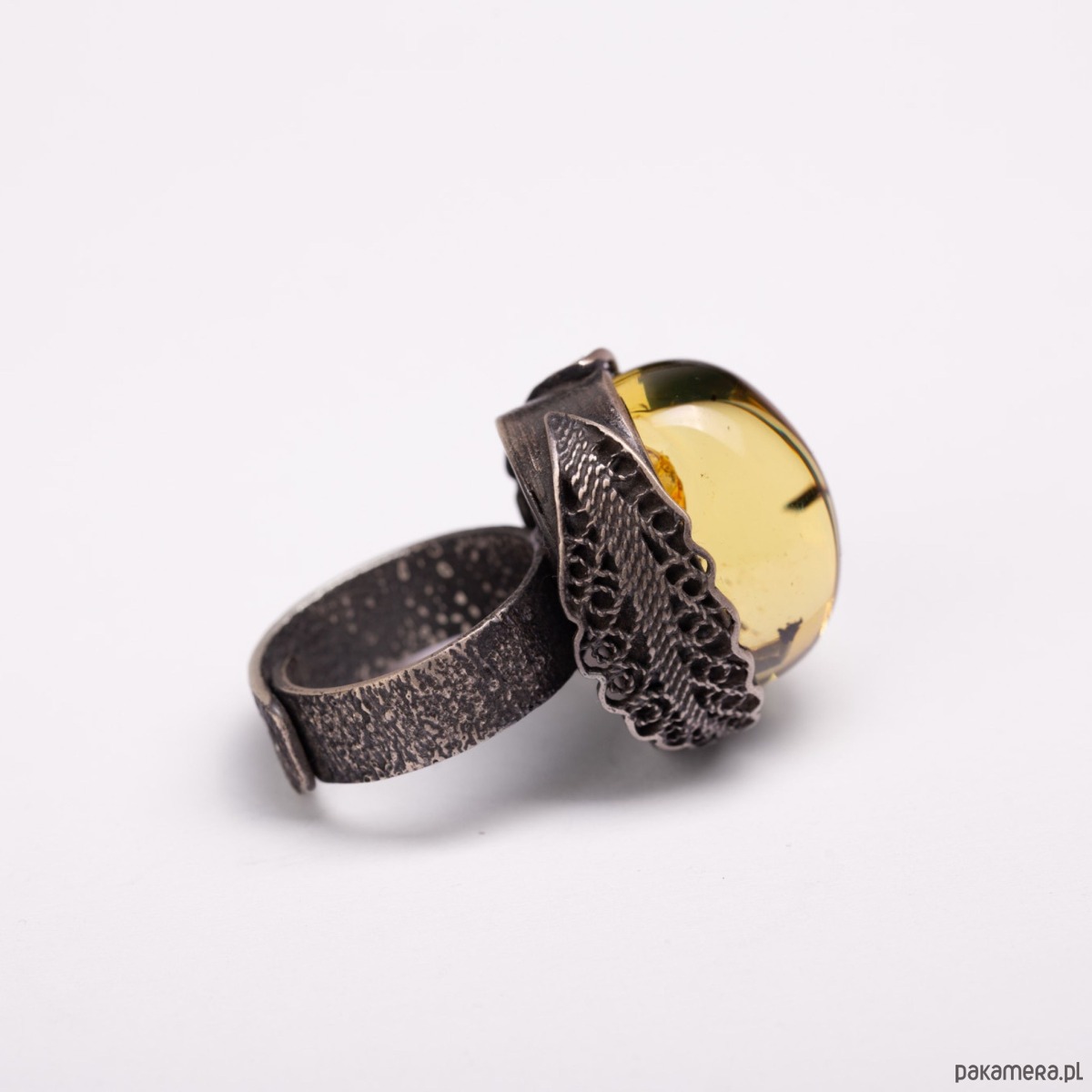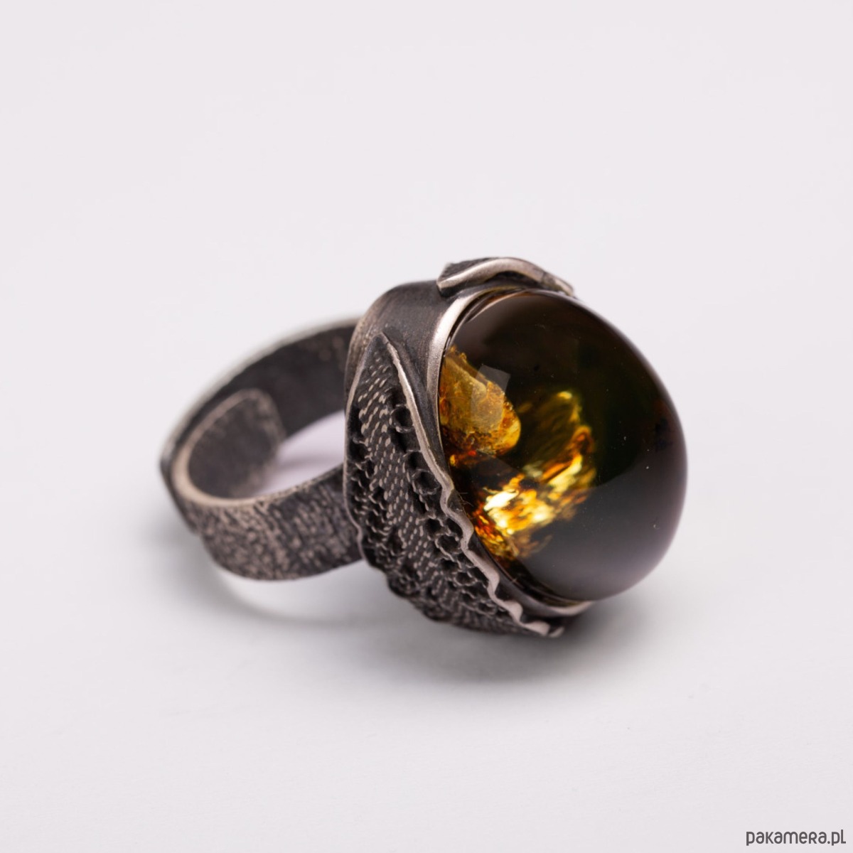 Pierścionek srebrny oksydowany z bursztynem bałtyckim