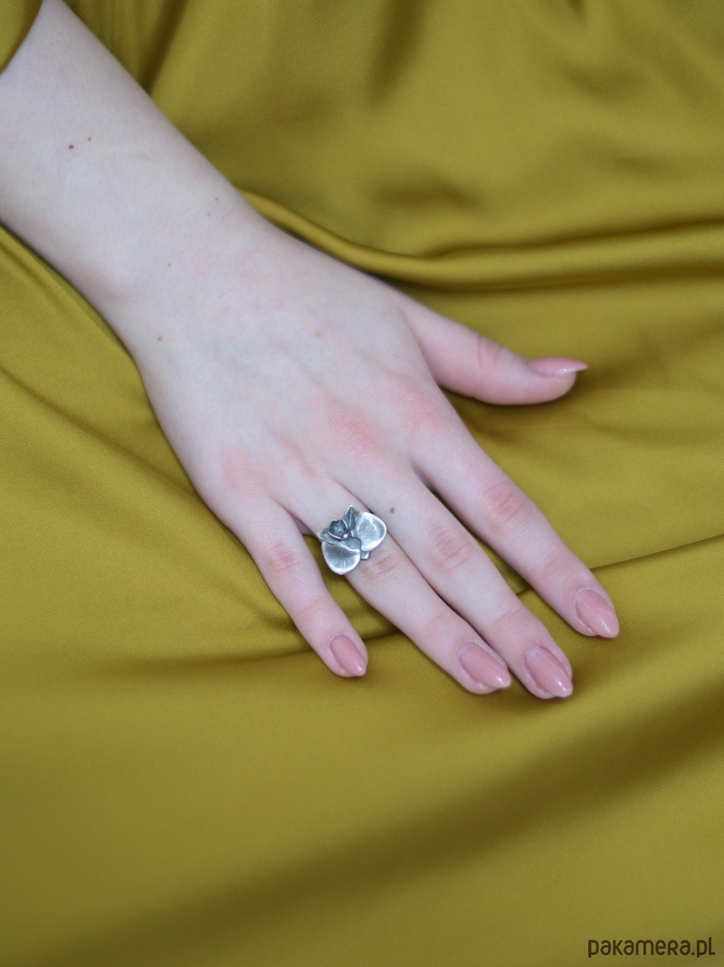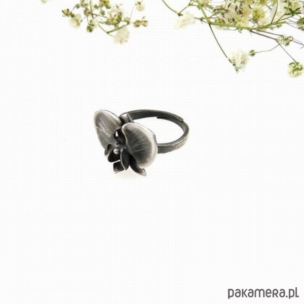 Zachwycający pierścionek srebrny z kwiatem orchidei.