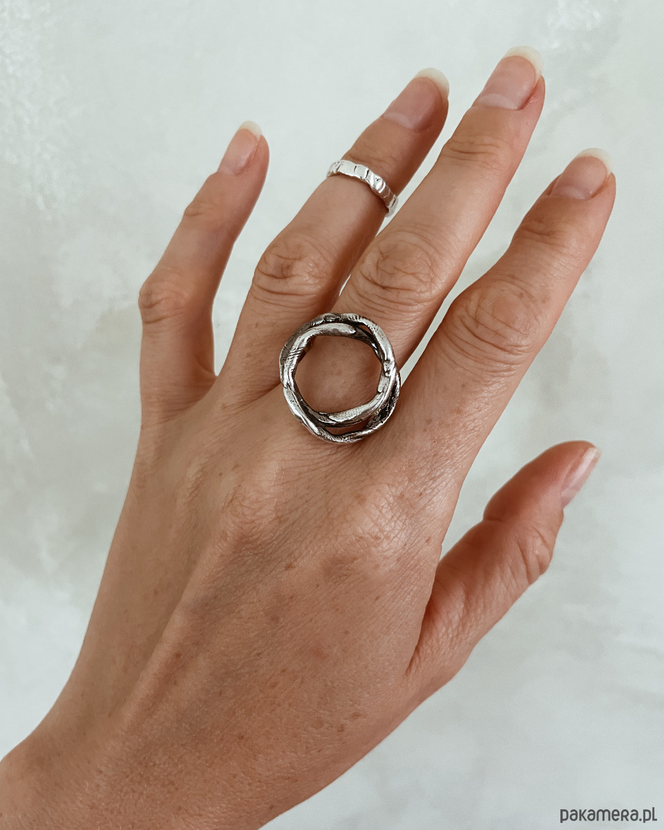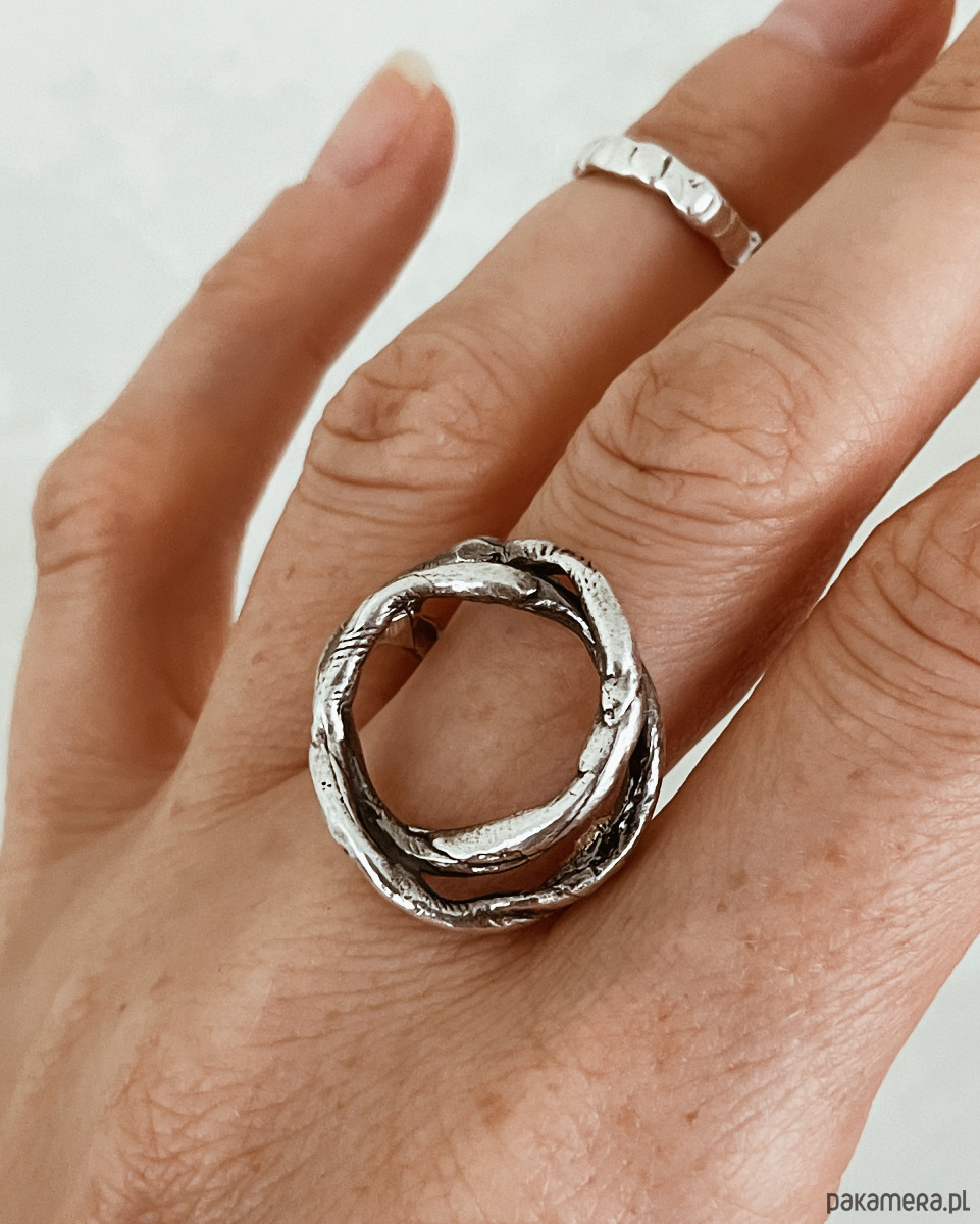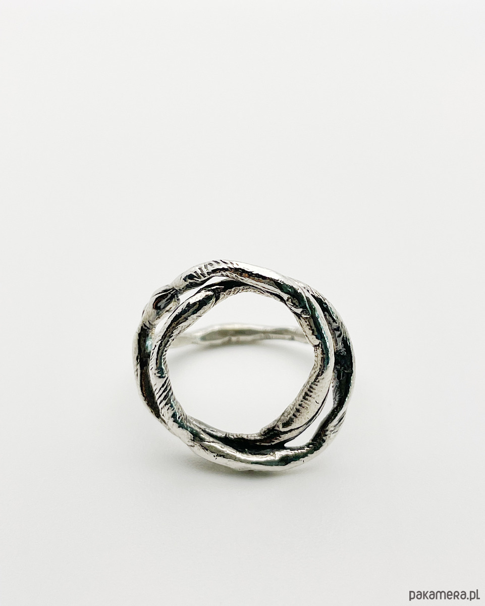 Ruggu to celebracja surowego, pierwotnego, nieujarzmionego piękna. Pierścionek ma nieregularną, ażurową, lekką formę.