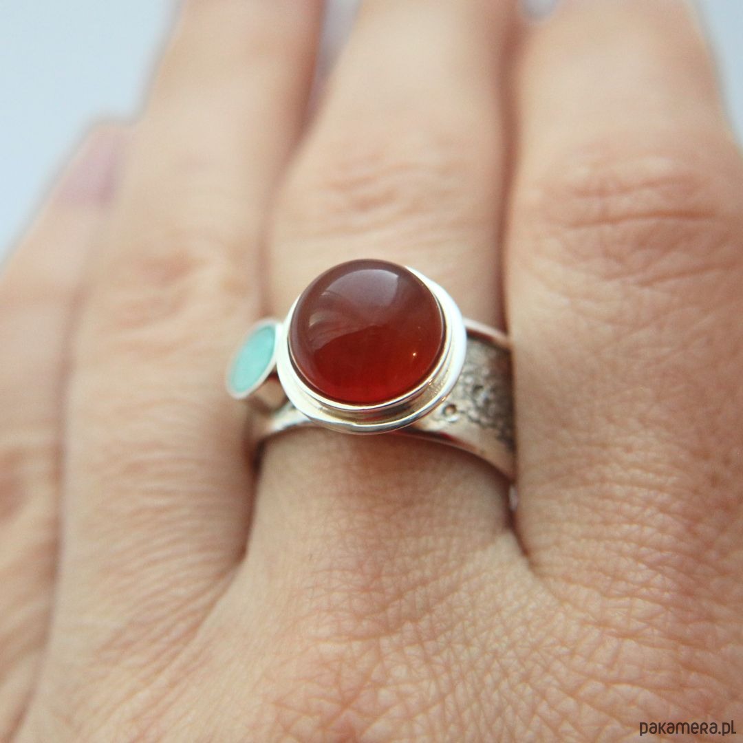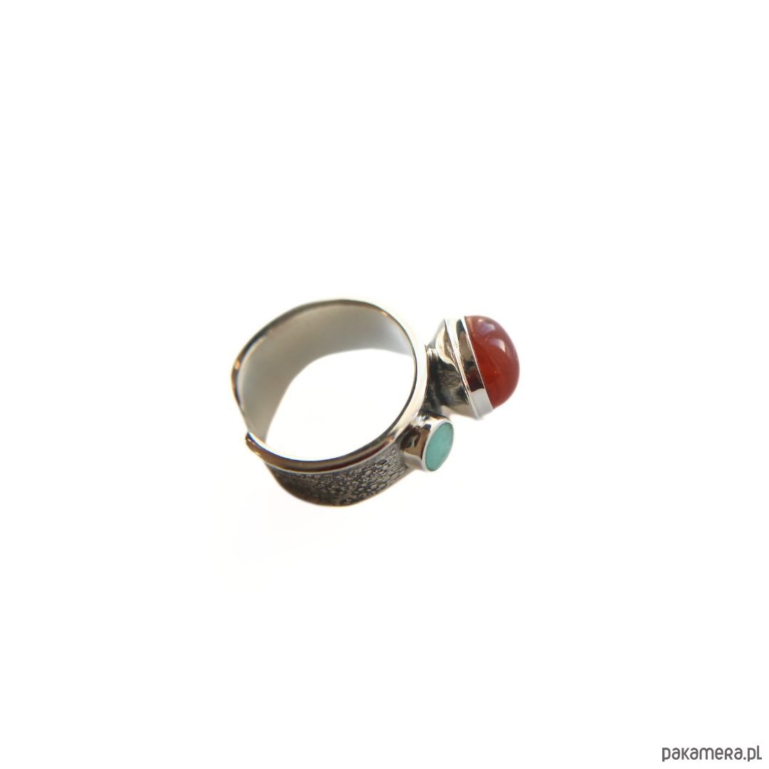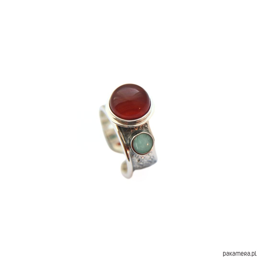 Pierścionek srebrny z agatem i amazonitem