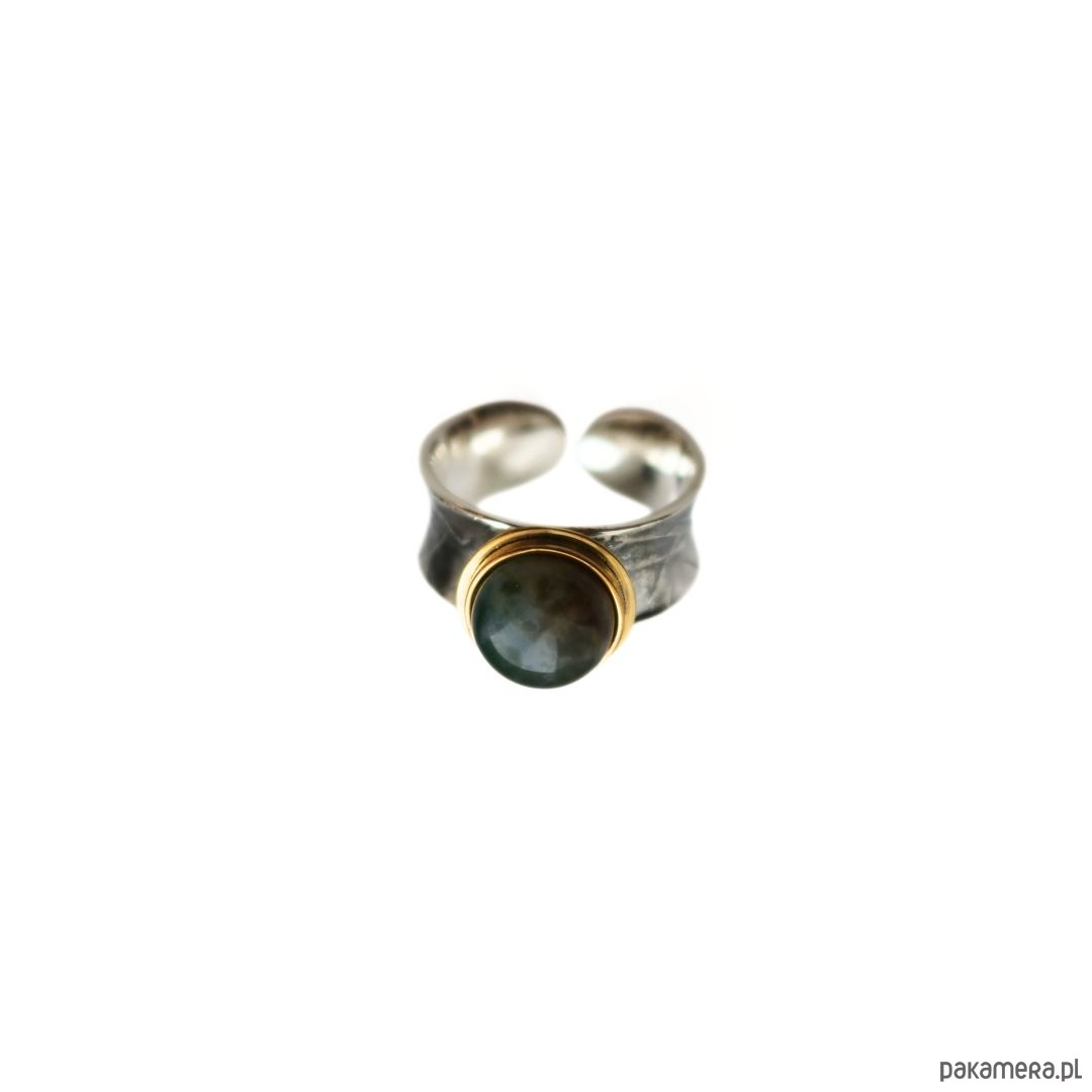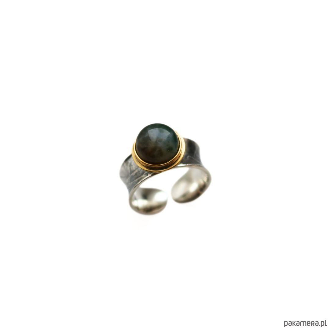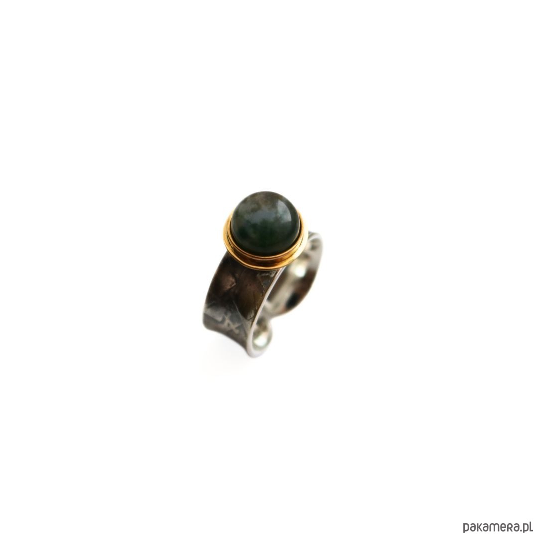 Pierścionek artystyczny z kolekcji MODERN z naturalnym agatem indyjskim. Wykonany ze srebra próby 925, oksydowany i miejscowo pozłocony.