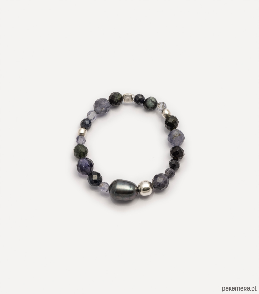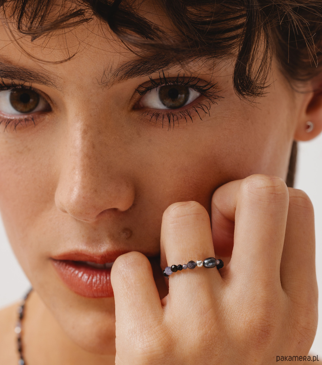 Pierścionek srebrny z ciemnymi kamieniami naturalnymi