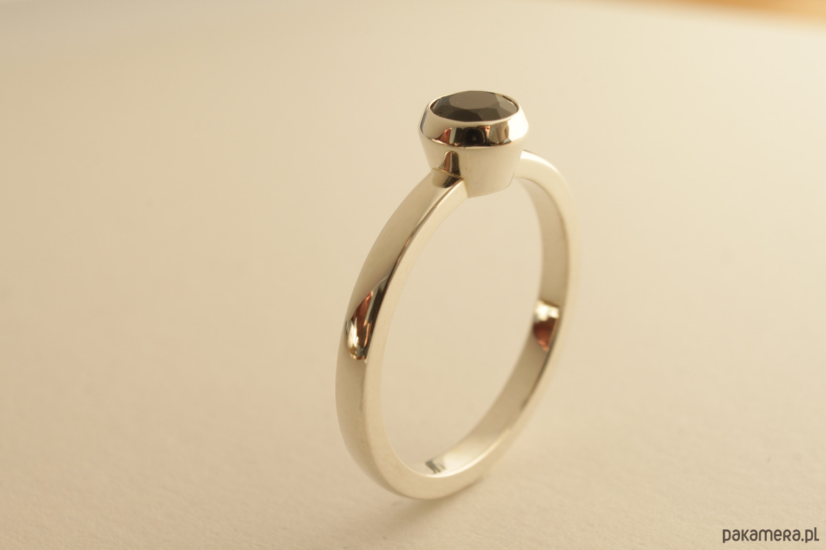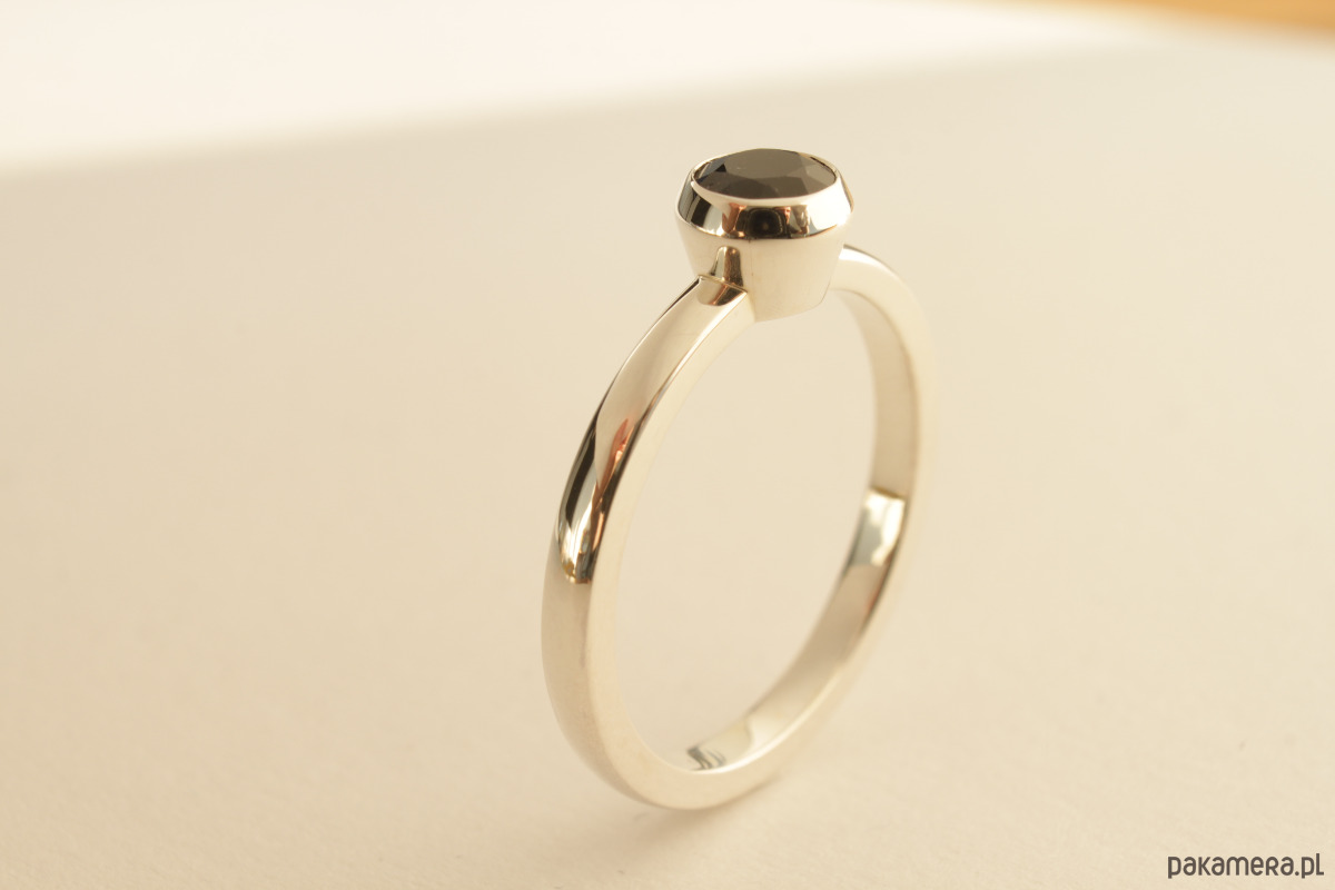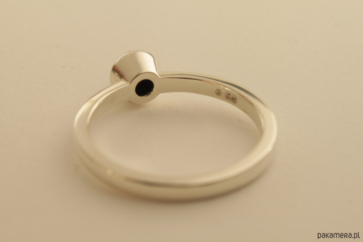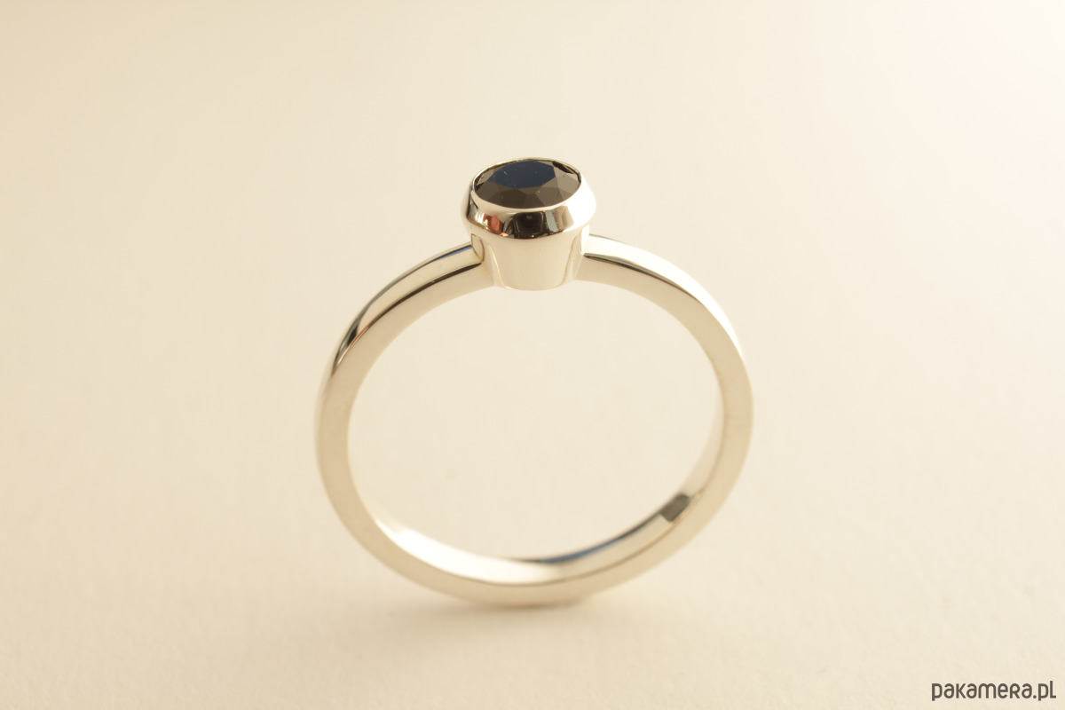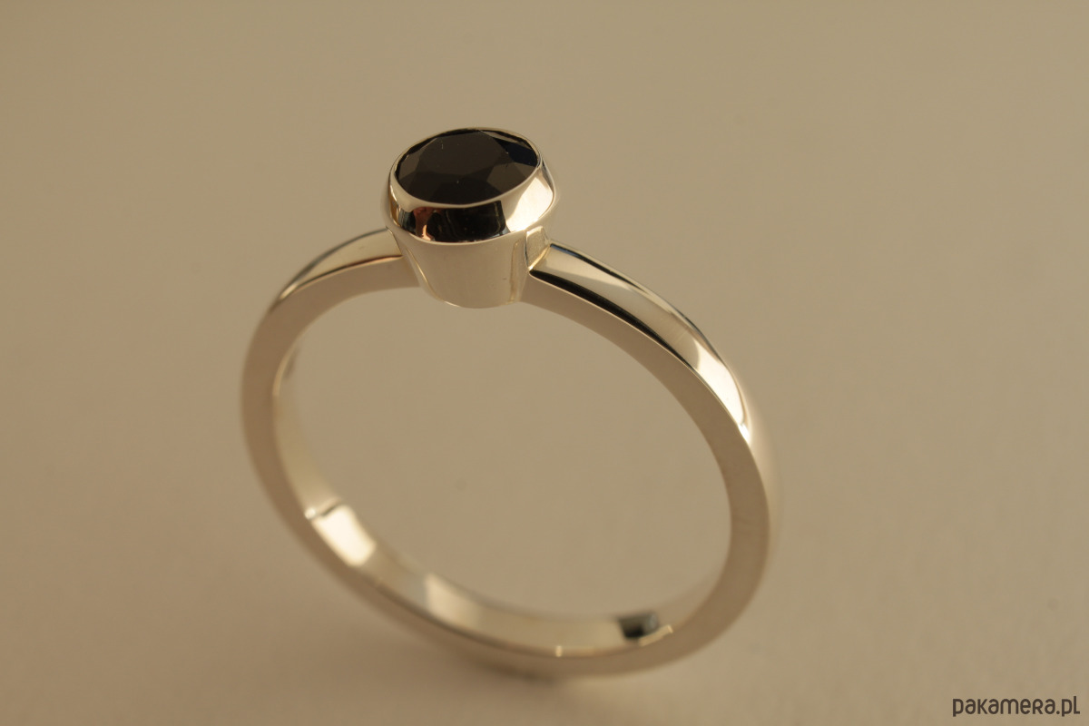 Pierścionek ze srebra 0,925 z czarnym szafirem ok.0,82 ct (ok. 5 mm średnicy).