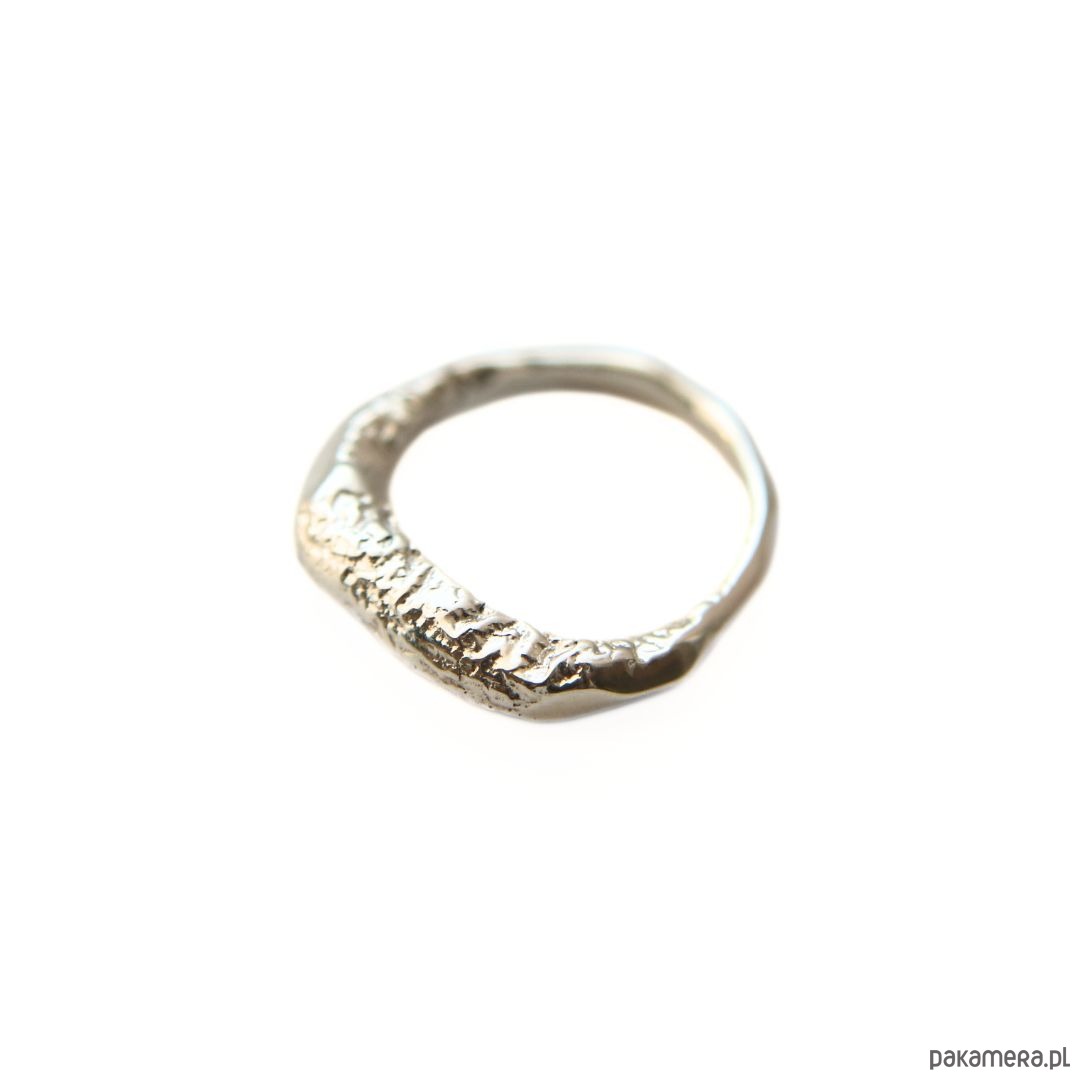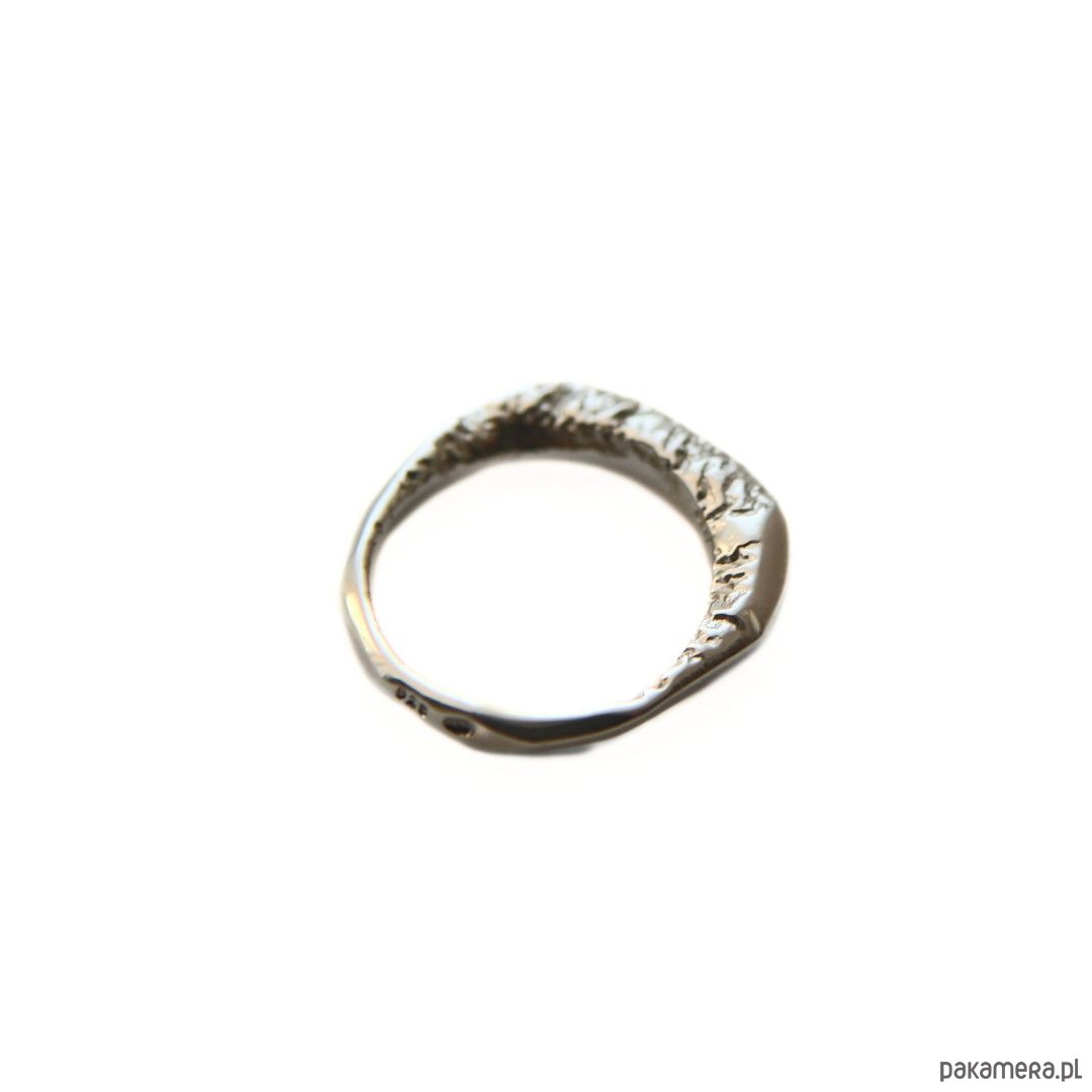 Delikatny, ozdobny, fakturowany pierścionek inspirowany korą drzewa.