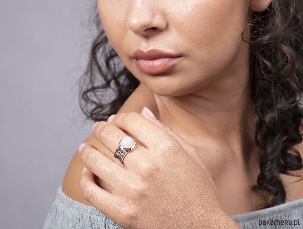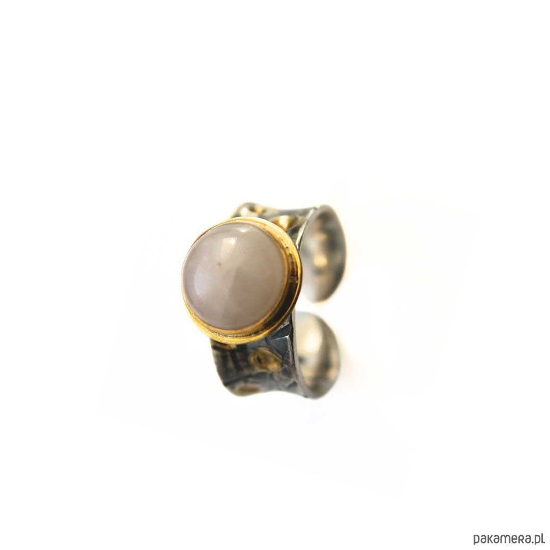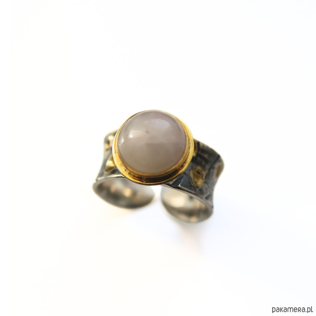 Pierścionek srebrny próby 925 z fakturą, oksydowany, miejscowo złocony