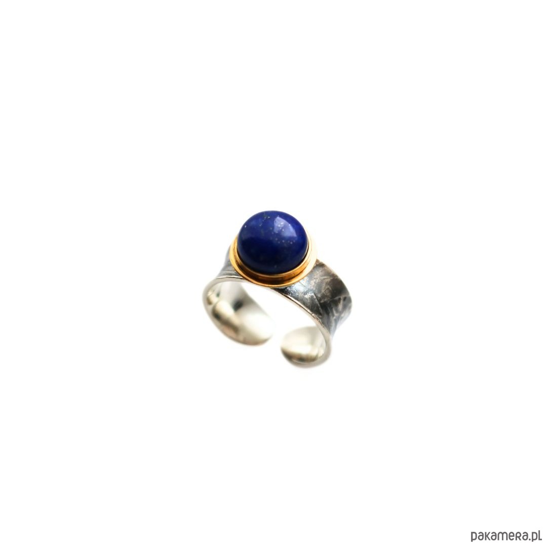 Pierścionek artystyczny z kolekcji MODERN z naturalnym Lapis lazuli. Wykonany ze srebra próby 925, oksydowany i miejscowo pozłocony.