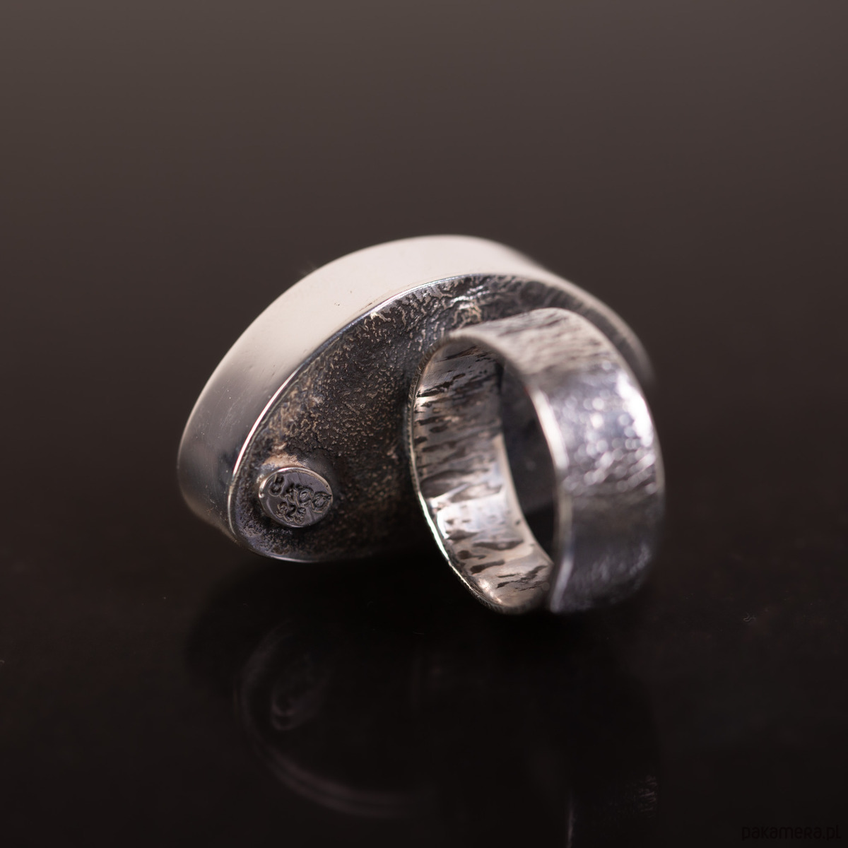 Waga i odczucie: 19 g – to waga porównywalna do nieco mniej niż trzech monet 5-złotowych. Pierścionek jest solidny i wyraźnie wyczuwalny na dłoni, co daje przyjemne poczucie jakości i trwałości ręcznego wykonania.