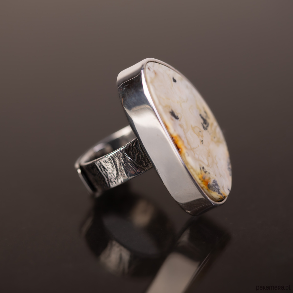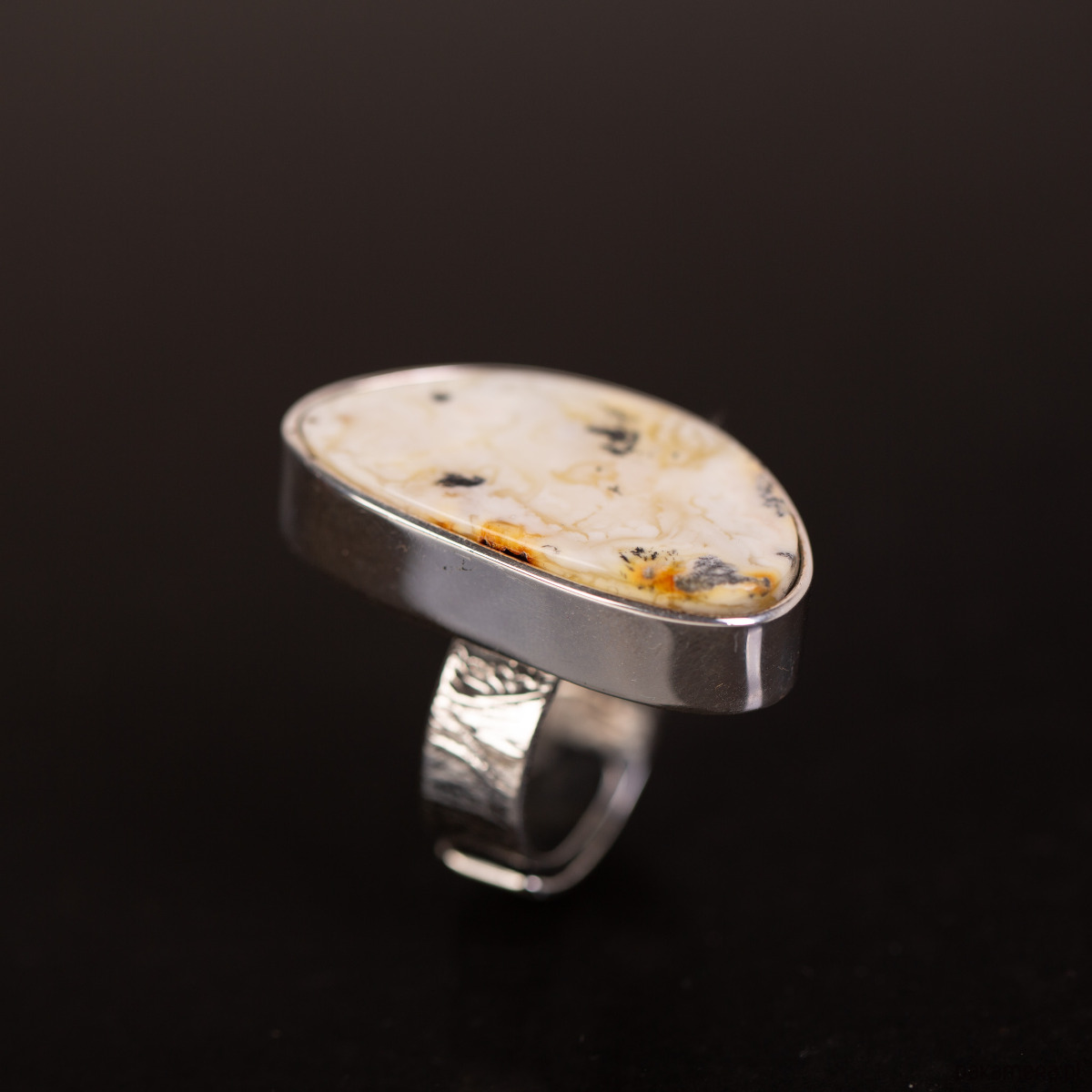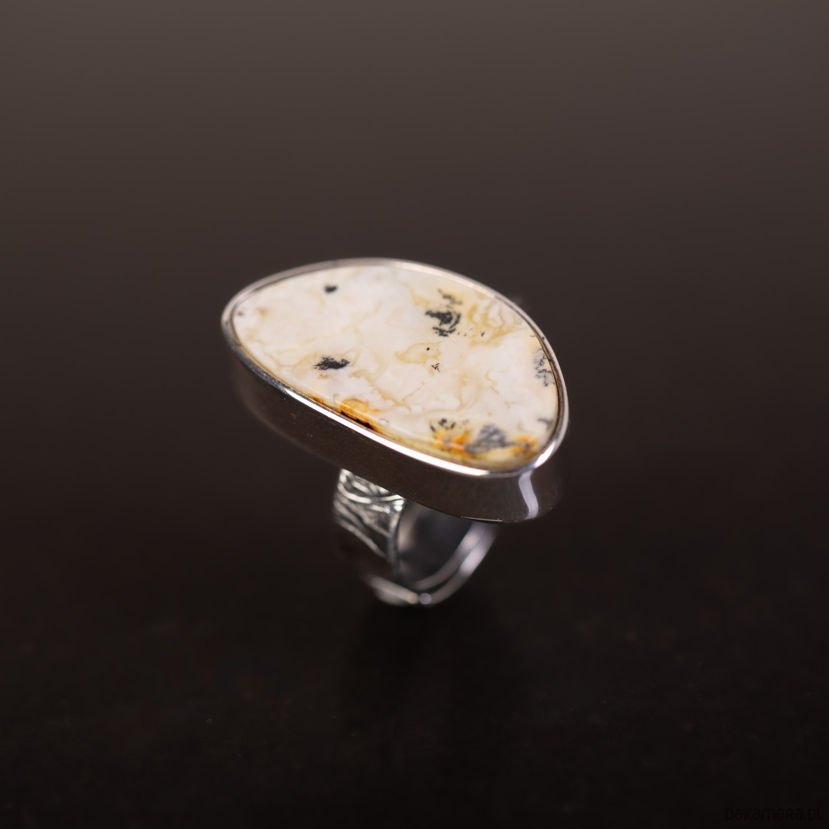 Ręcznie wykonany pierścionek „Biały Pejzaż”