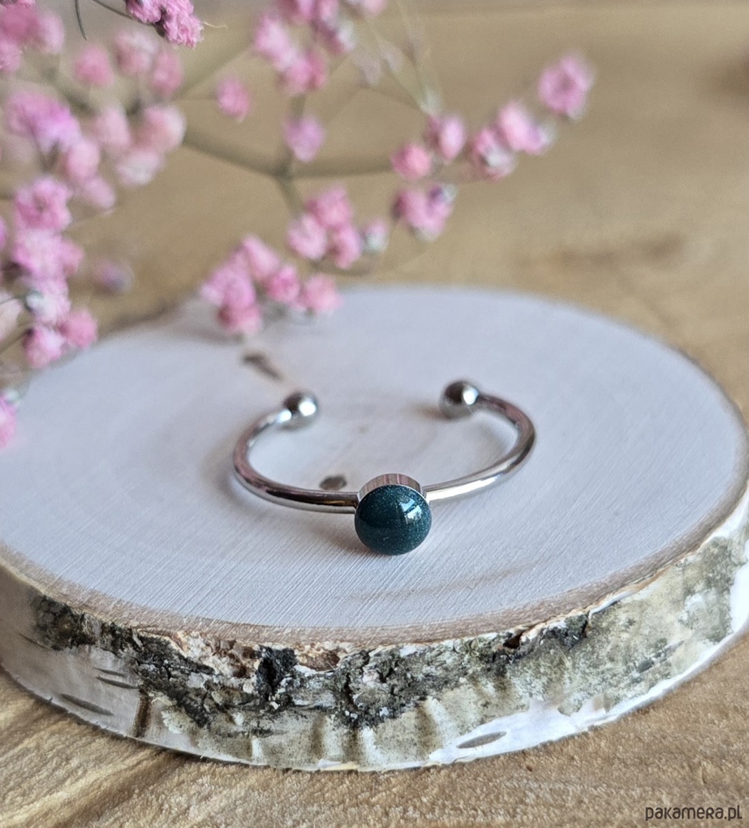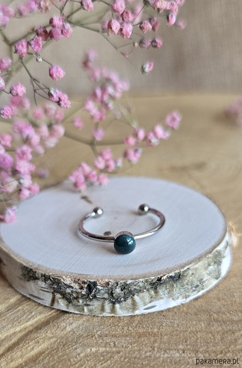 Pierścionek srebrny zielone oczko zielony minimalistyczny żywica brokatowy