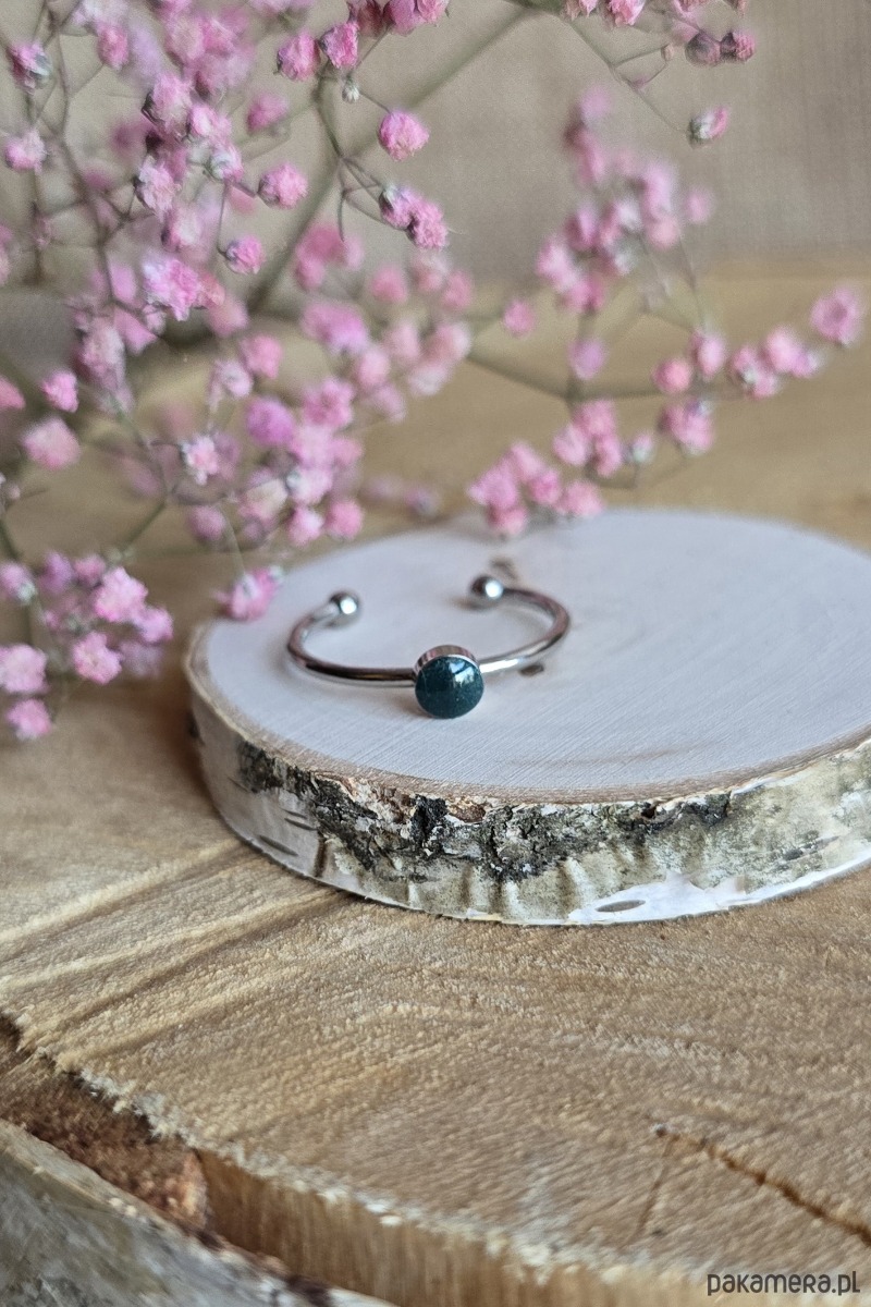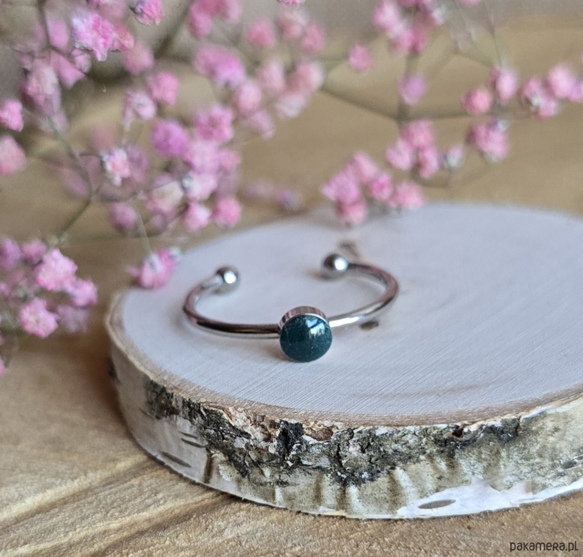 Pierścionek srebrny zielone oczko zielony minimalistyczny żywica brokatowy