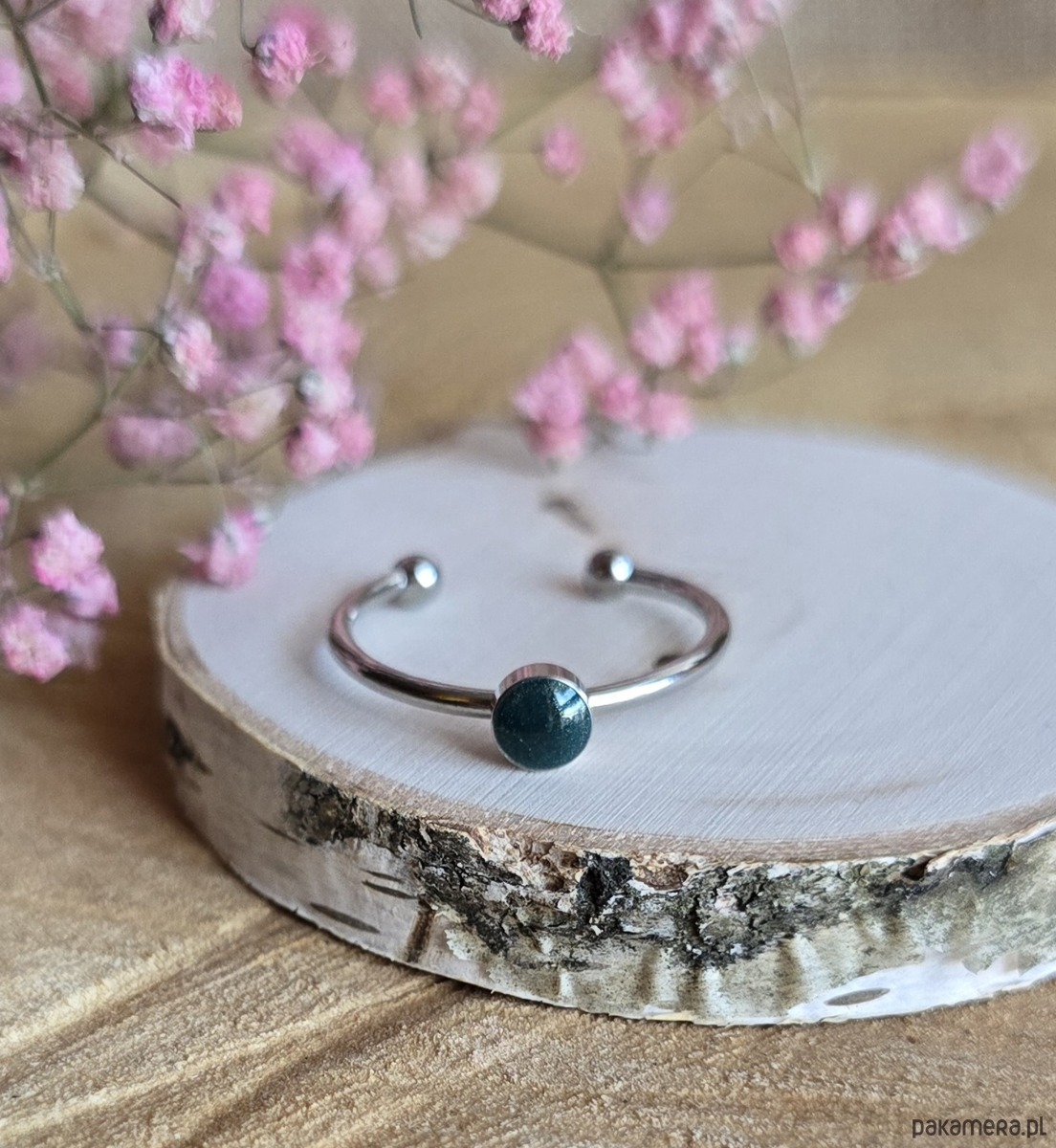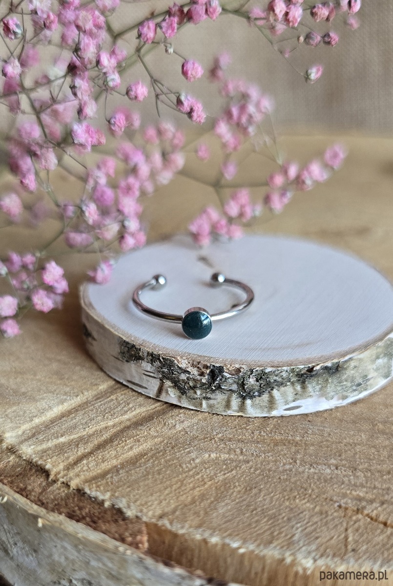 Pierścionek srebrny zielone oczko zielony minimalistyczny żywica brokatowy