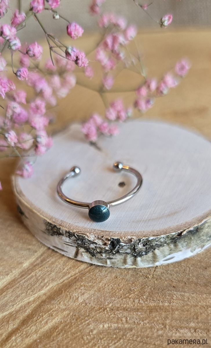 Pierścionek srebrny zielone oczko zielony minimalistyczny żywica brokatowy