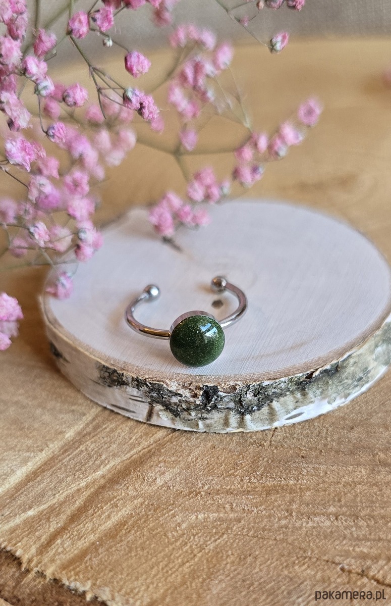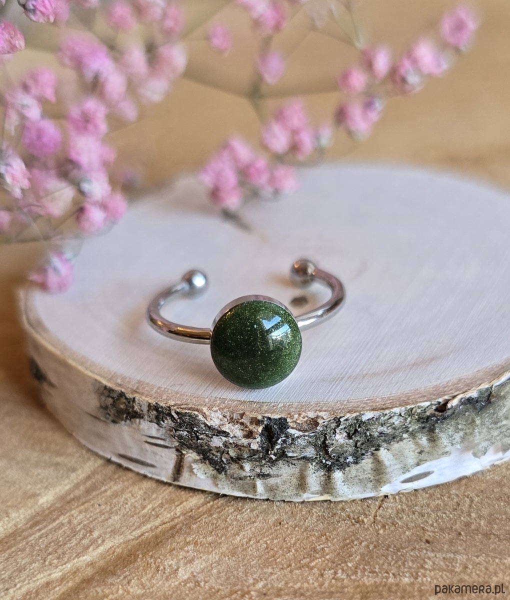 Pierścionek srebrny zielone oczko zielony minimalistyczny żywica brokatowy