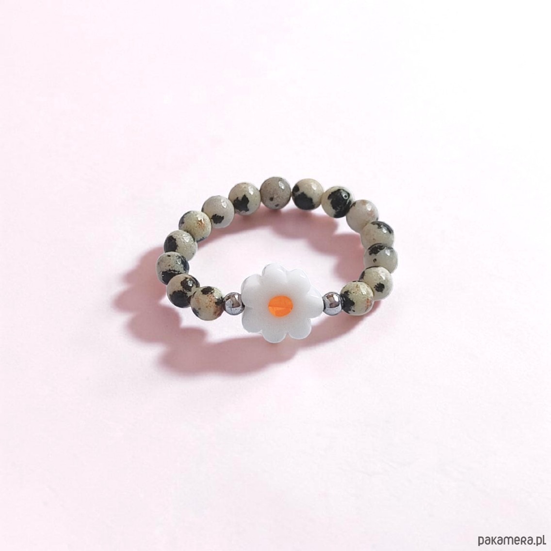 Pierścionek : stokrotka : jaspis dalmatyński : silver