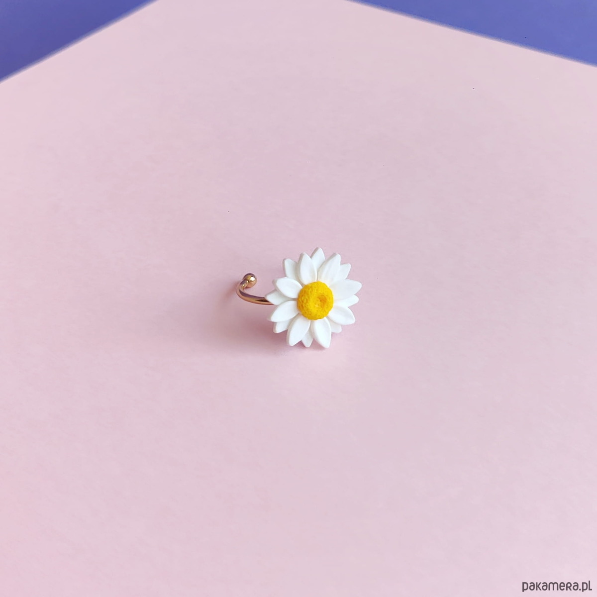 Dodaj odrobinę wiosennego uroku do swojej biżuterii dzięki pierścionkowi z kwiatem stokrotki. Każdy egzemplarz został ręcznie wykonany z niezwykłą precyzją, co nadaje mu unikalny charakter.