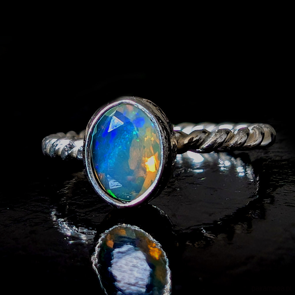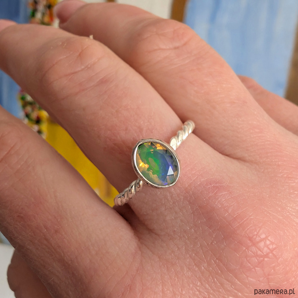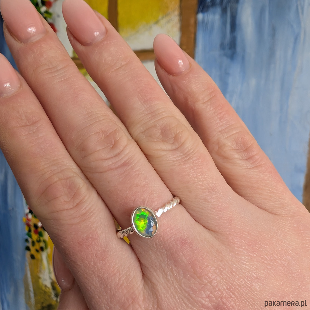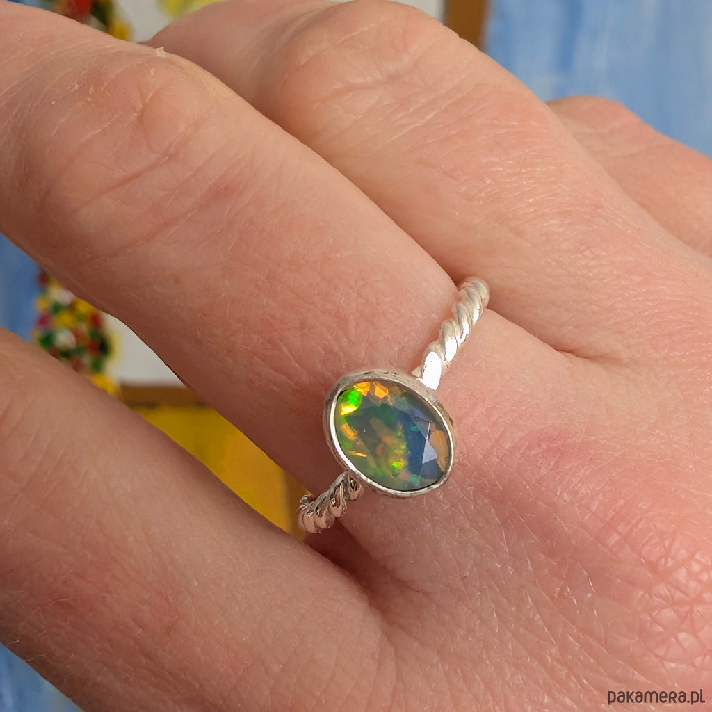 Pierścionek z przepięknym, bardzo kolorowym opalem etiopskim oprawionym w srebro 925.