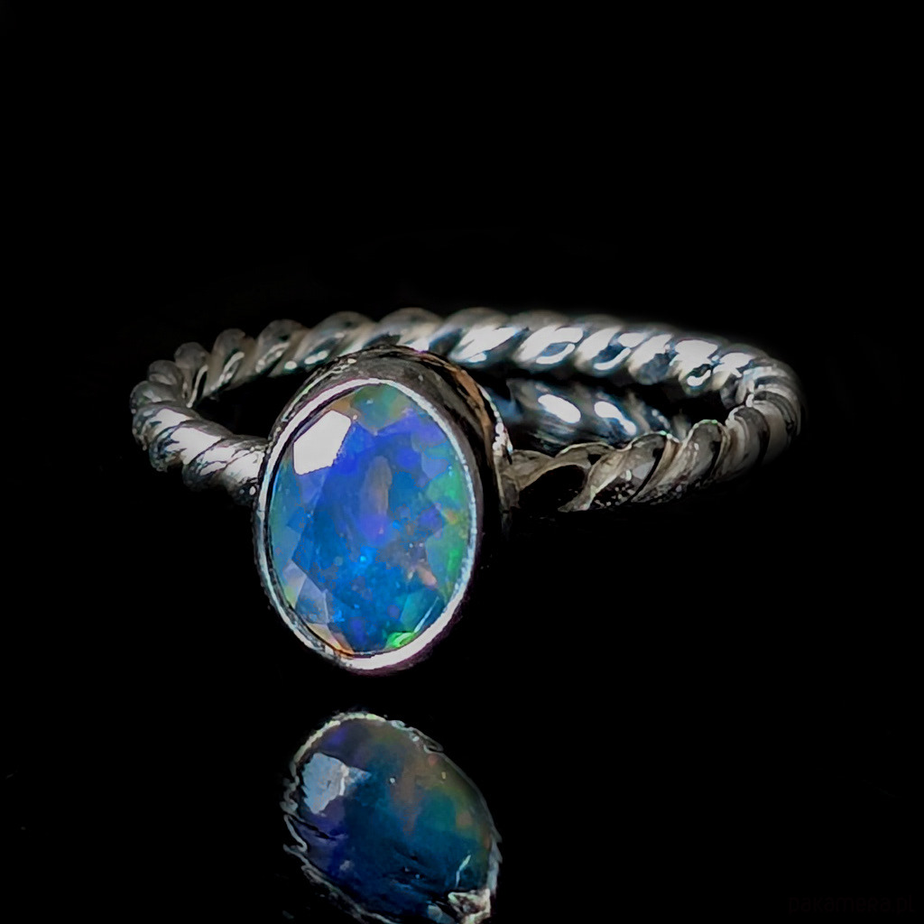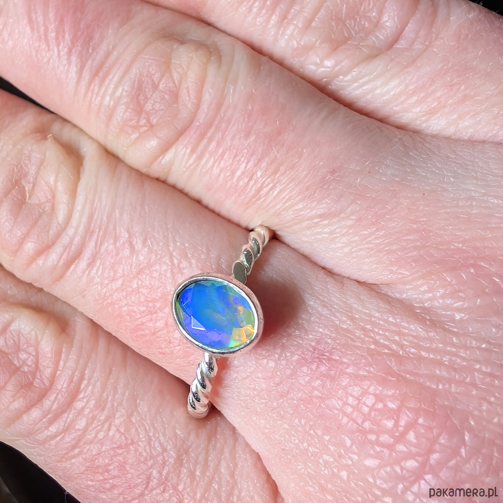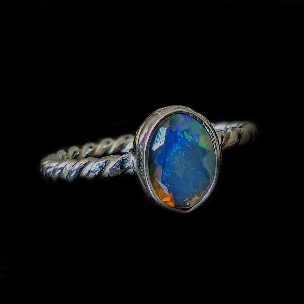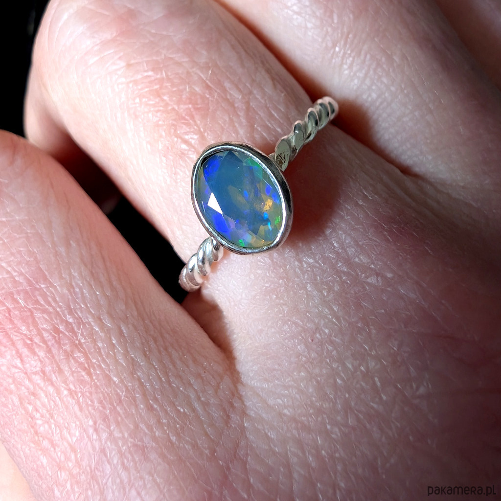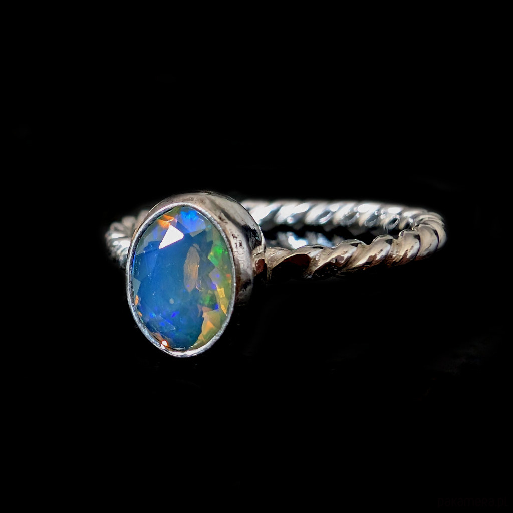 Pierścionek z przepięknym, bardzo kolorowym opalem etiopskim oprawionym w srebro 925.