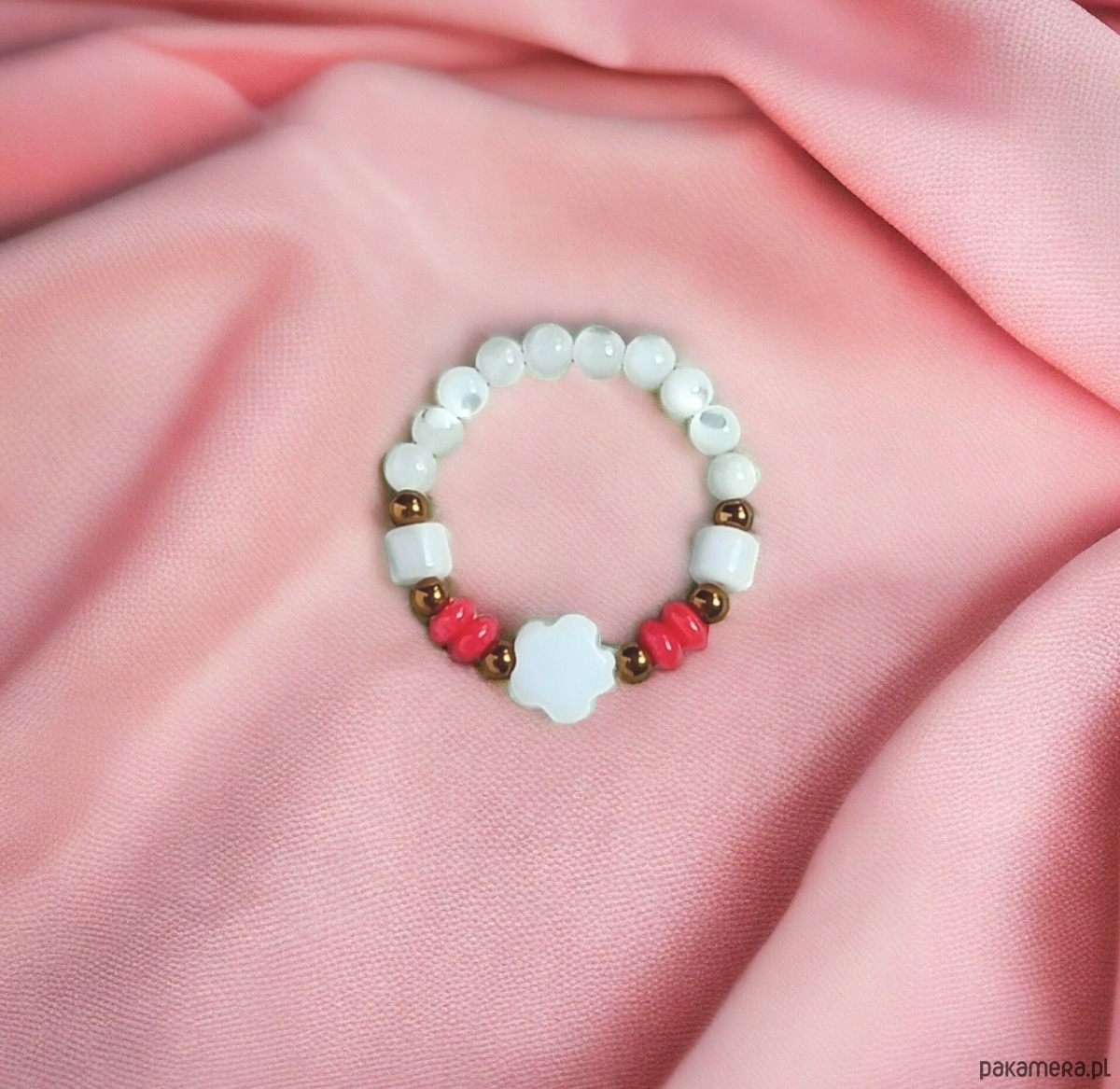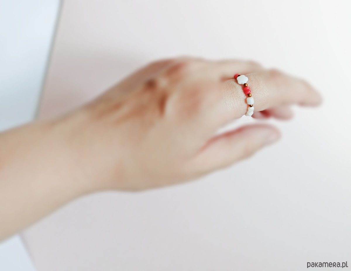 Pierścionek : summer : muszla, koral, hematyt