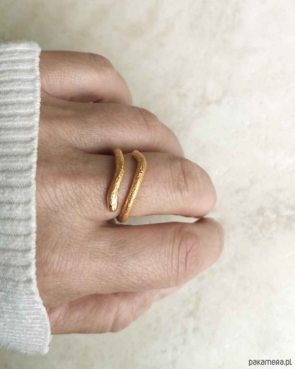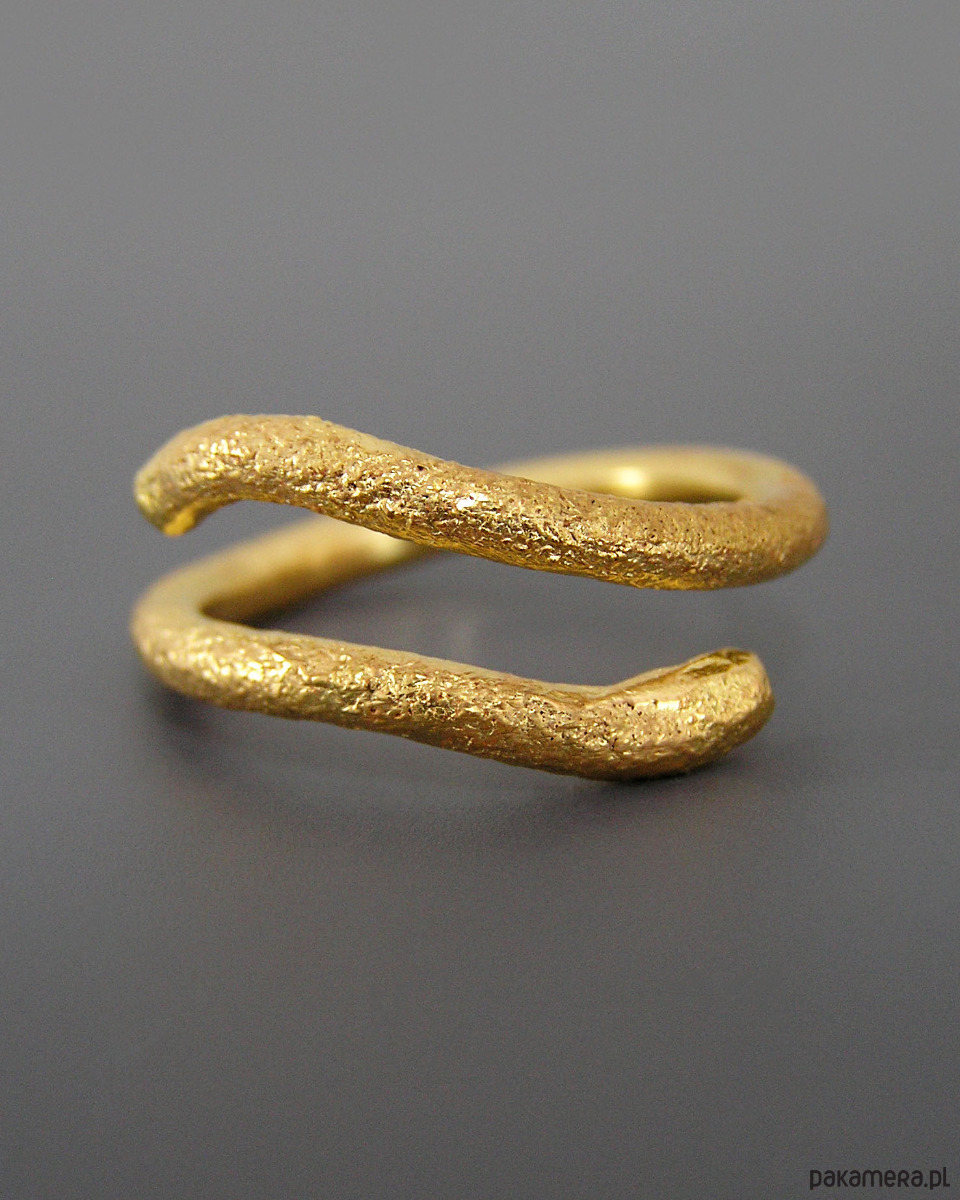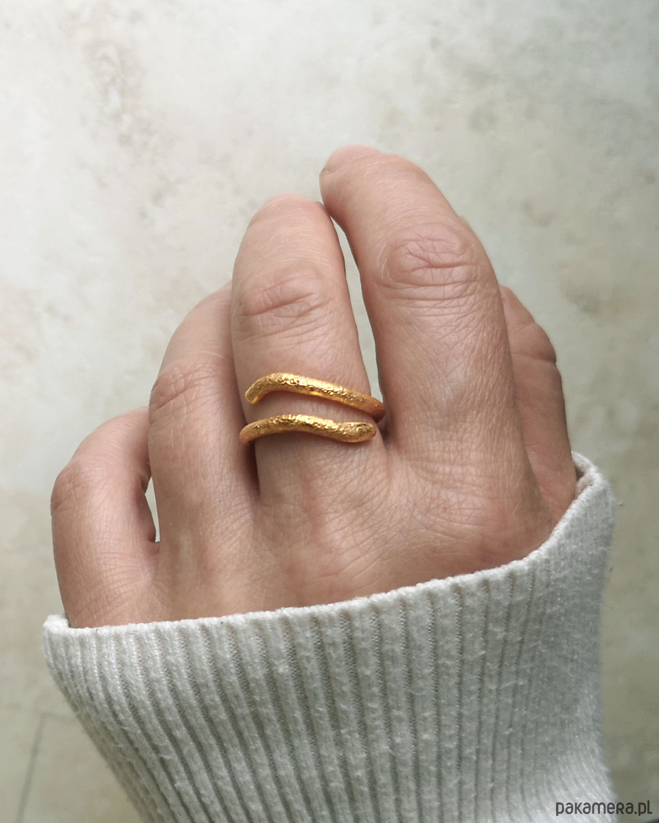 Unikatowy pierścionek wykonany ze srebra 925. Pozłacany warstwą 2 mikronów 24 karatowego złota.
