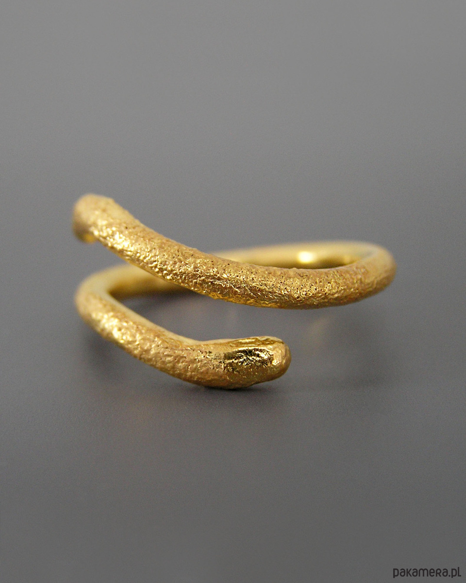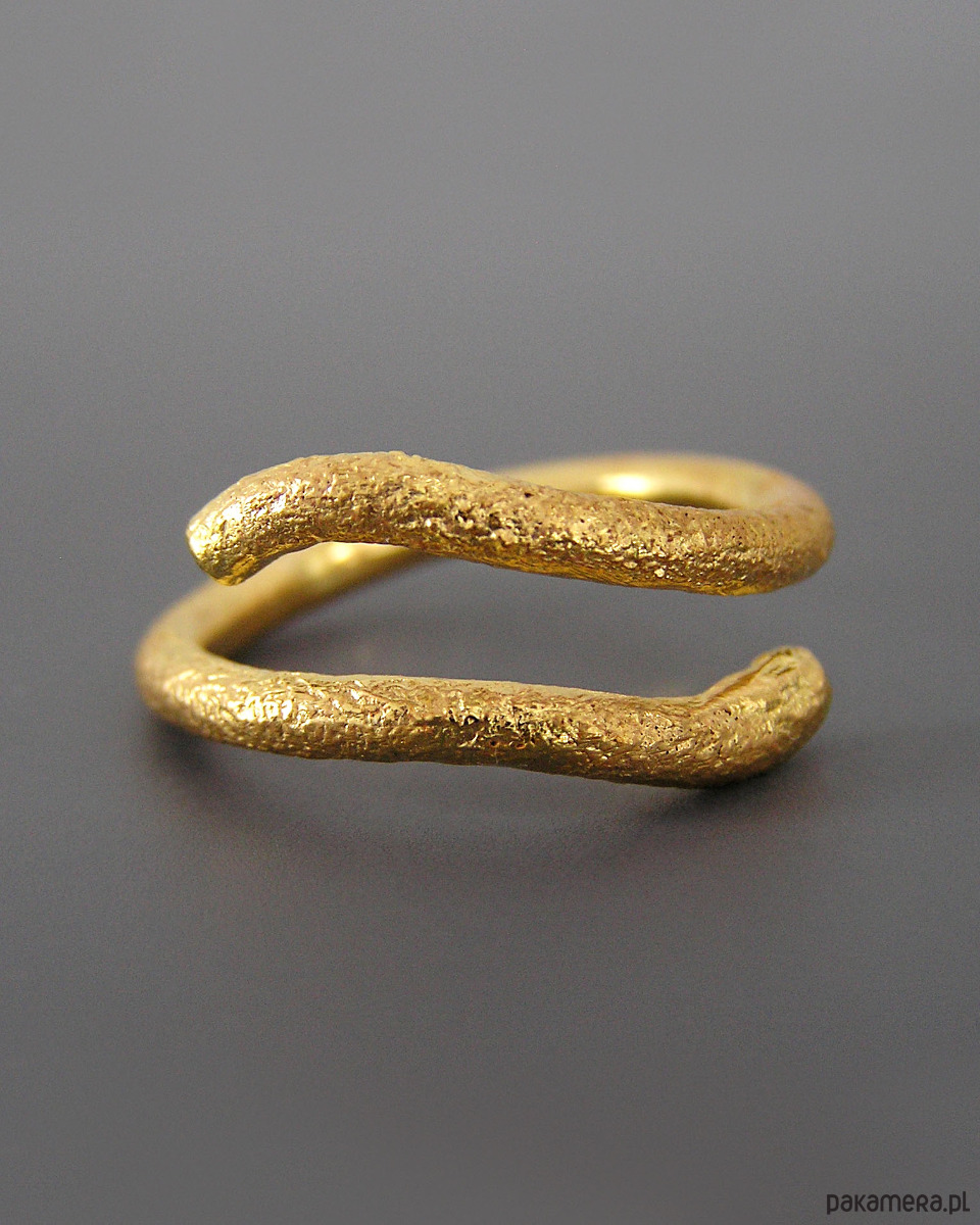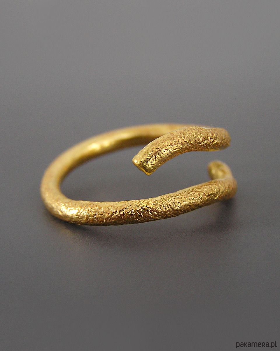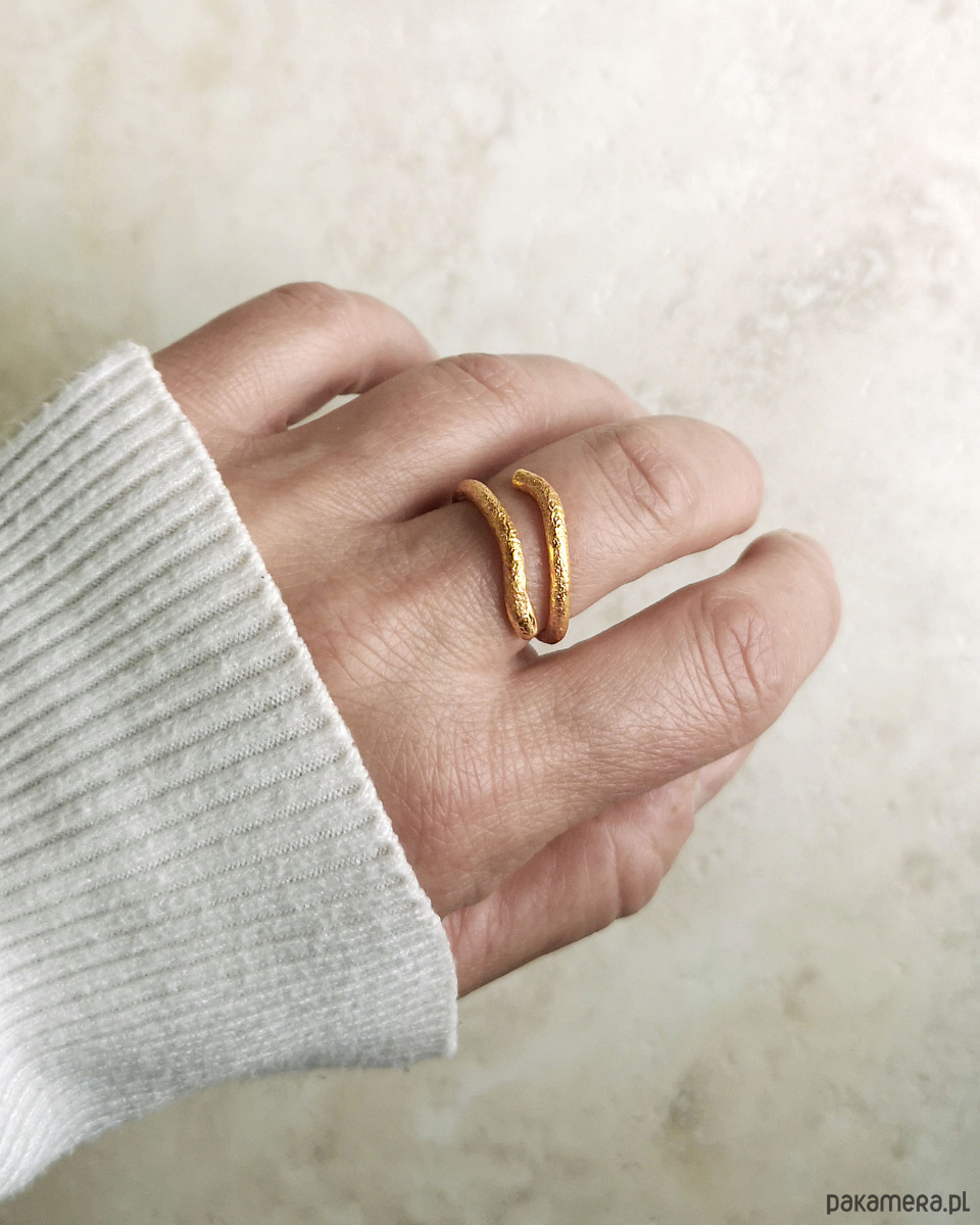 Unikatowy pierścionek wykonany ze srebra 925. Pozłacany warstwą 2 mikronów 24 karatowego złota.