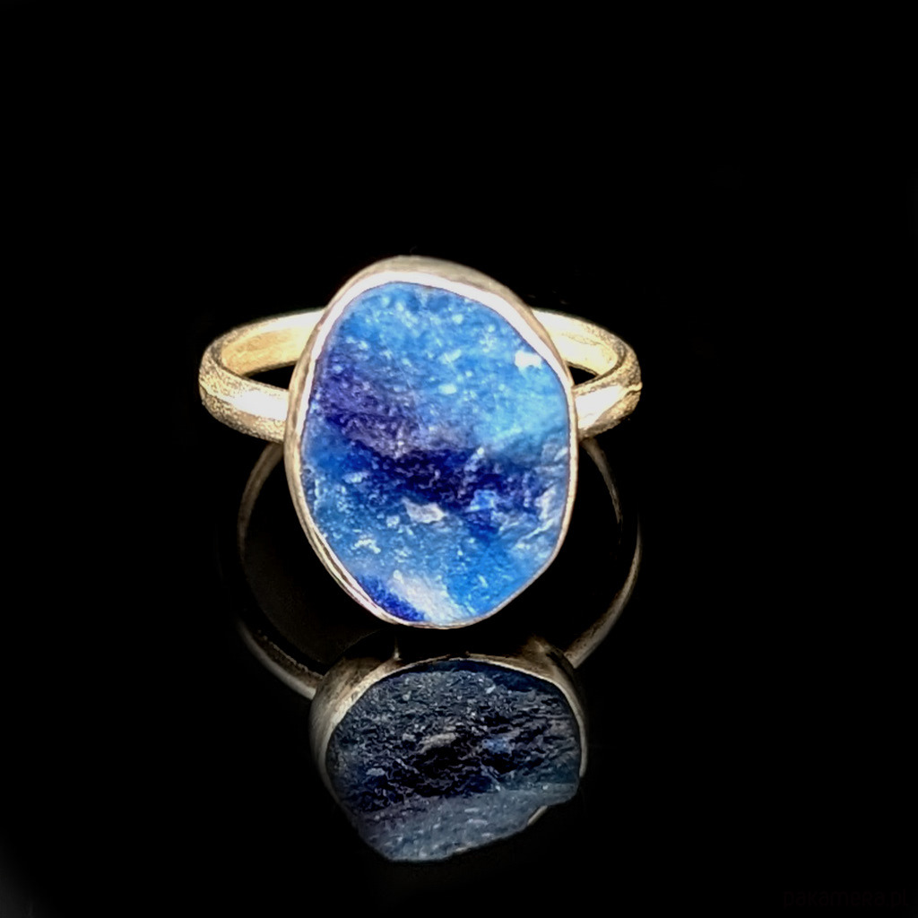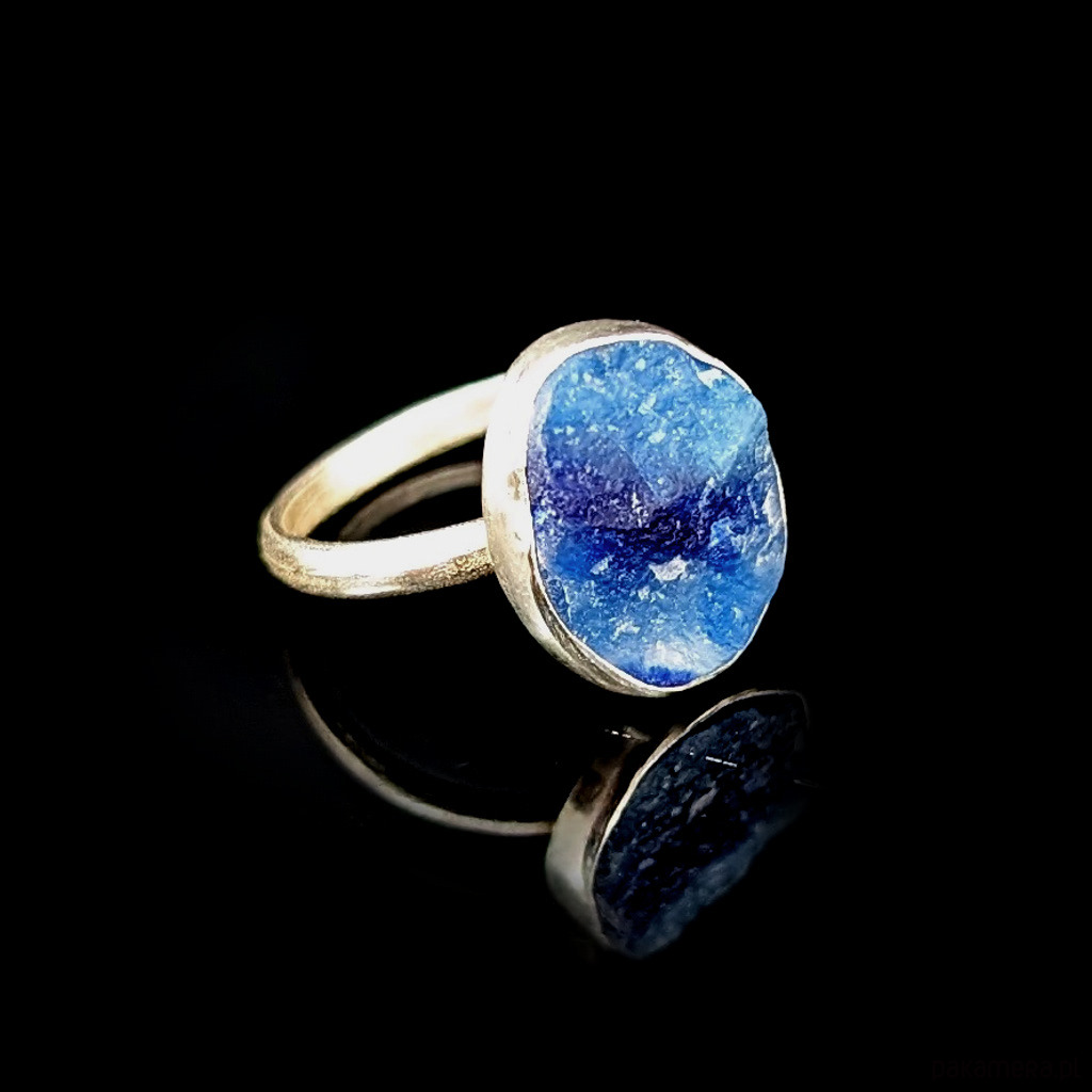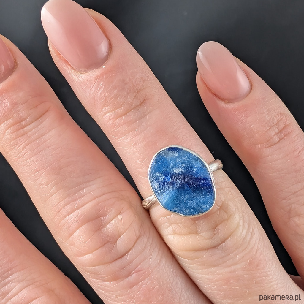 Surowy pierścień z naturalnym minerałem o naziwe afganit oprawionym w srebro próby 925. Wymiary oprawy 14 x 12 mm, rozmiar jbilerski 11. Waga 2,8 g. Zostanie zapokowany w ozdobne pudełeczko.