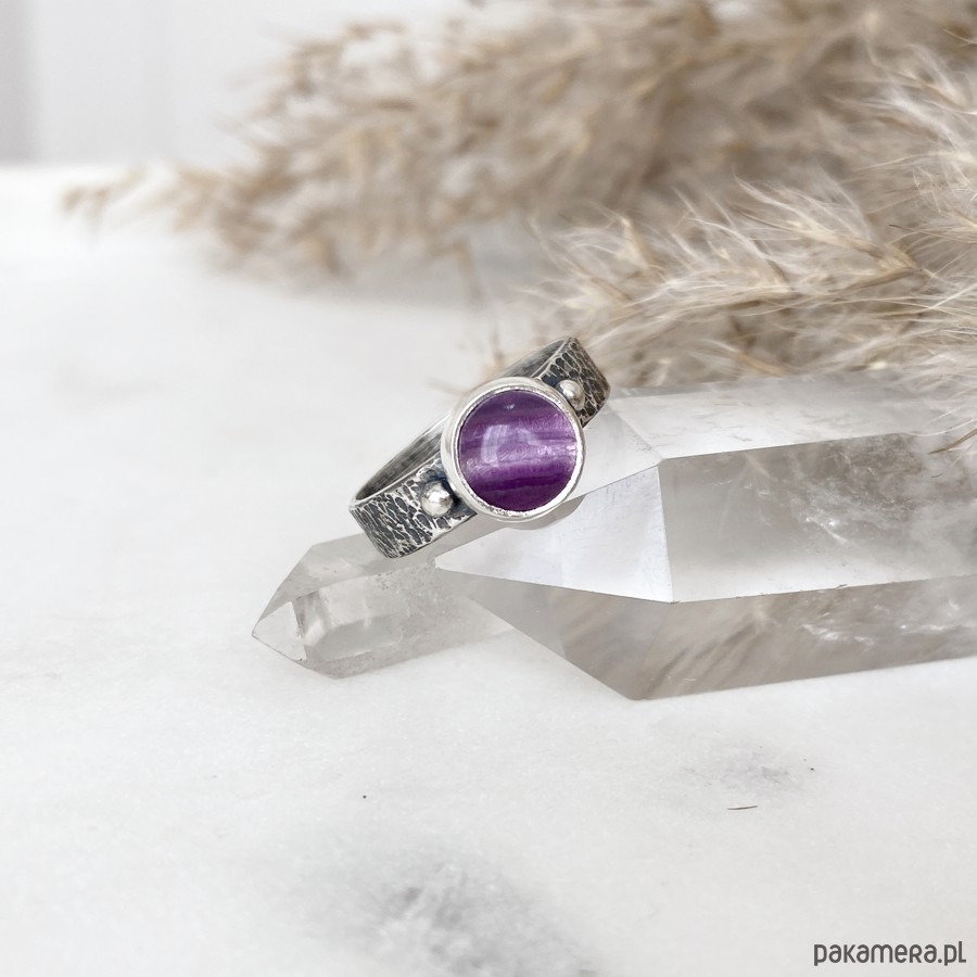 Surowy w formie, srebrny pierścionek z naturalnym fluorytem. Biżuteria wykonana od podstaw ręcznie .