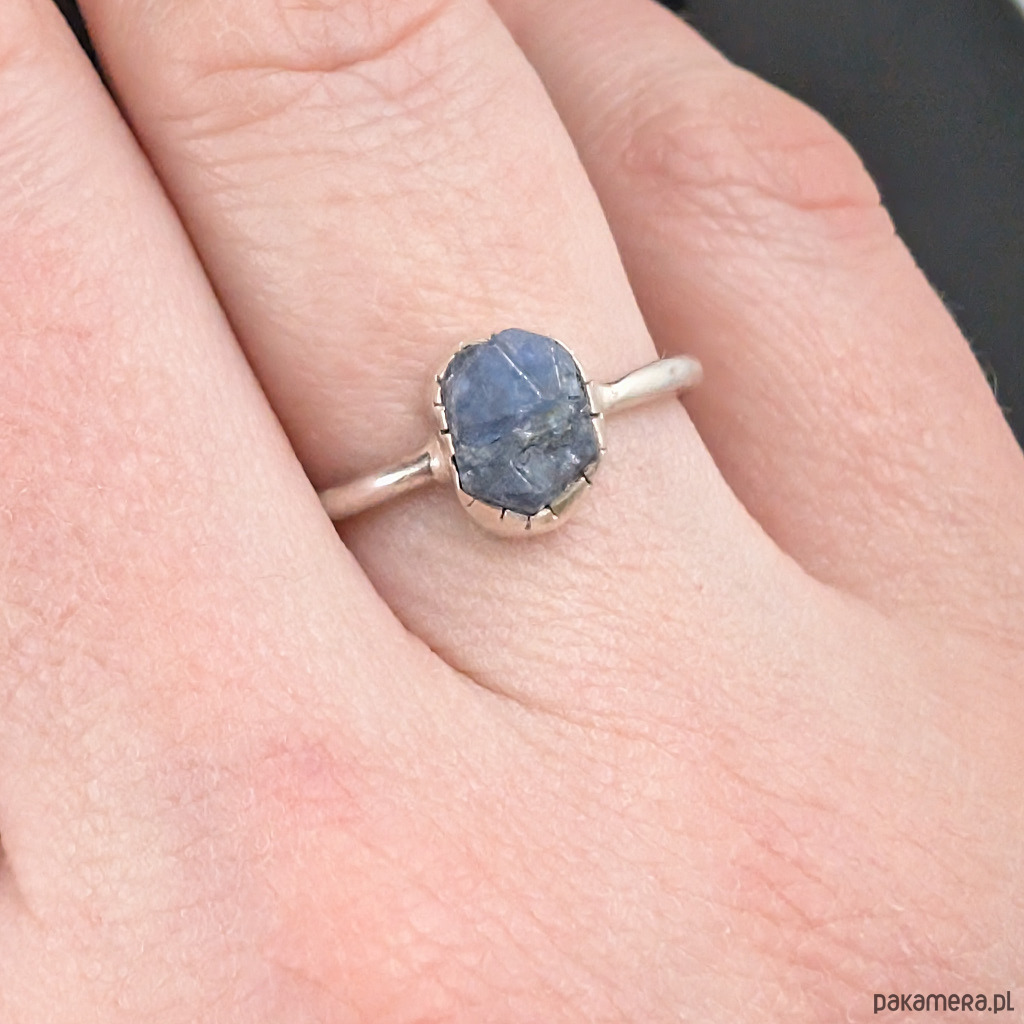 Piękny szafir w prostej, subtelnej oprawie srebra próby 925. Wymiary oprawy kamienia 8 x 7 mm, rozmiar jubilerski 14. Waga 2,7 grama. Pierścionek zostanie zapakowany w ozdobne pudełeczko. Wykonany przez dostawcę kamieni.