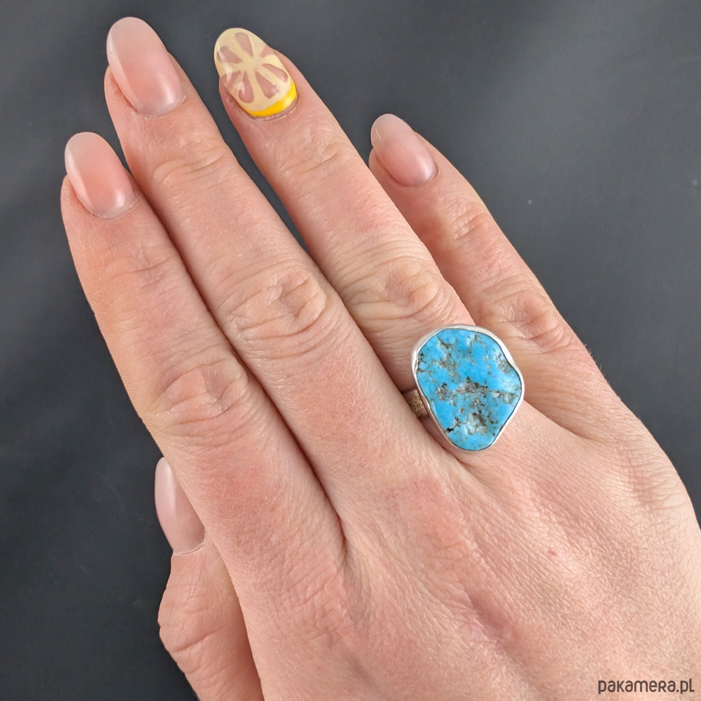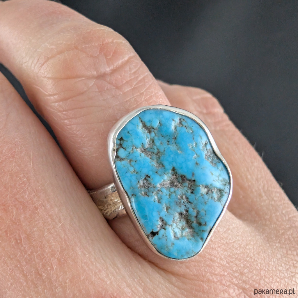 Pierścionek surowy z turkusem