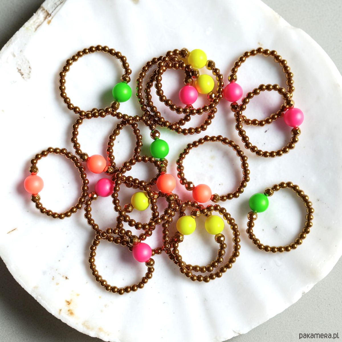 Pierścionek : ORANGE : Swarovski neon pearls : gold