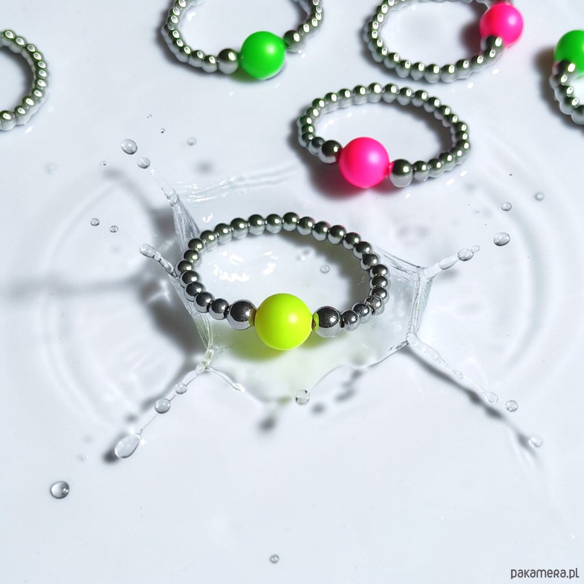 Pierścionek : Swarovski neon pearls : NEON YELLOW : silver