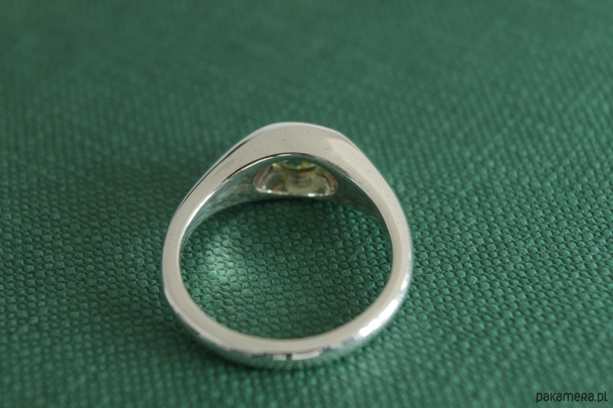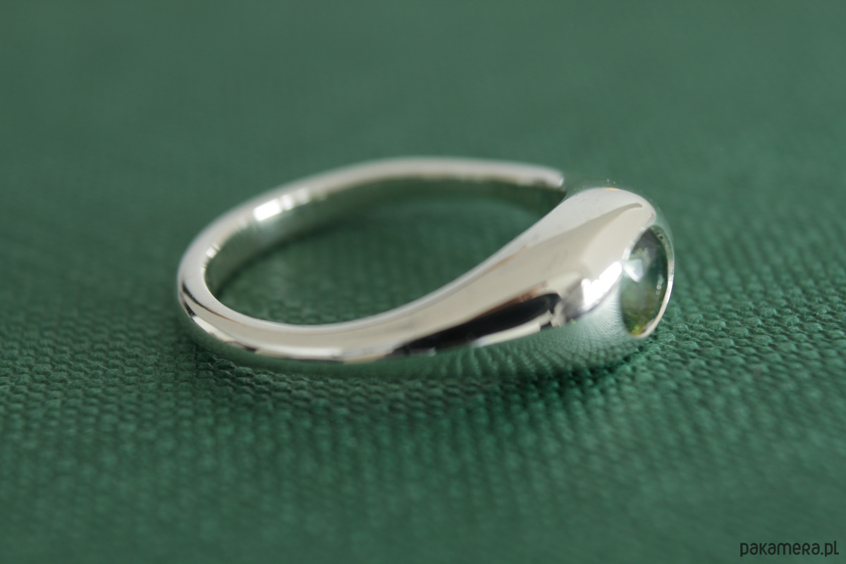 Ciężki, prawie pięciogramowy, ręcznie rzeźbiony w wosku i odlany w srebrze 925 pełny w środku.
