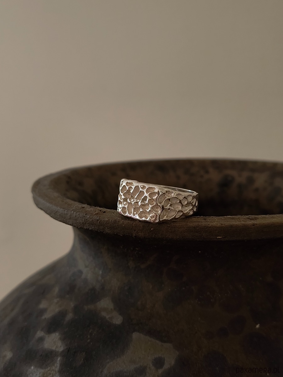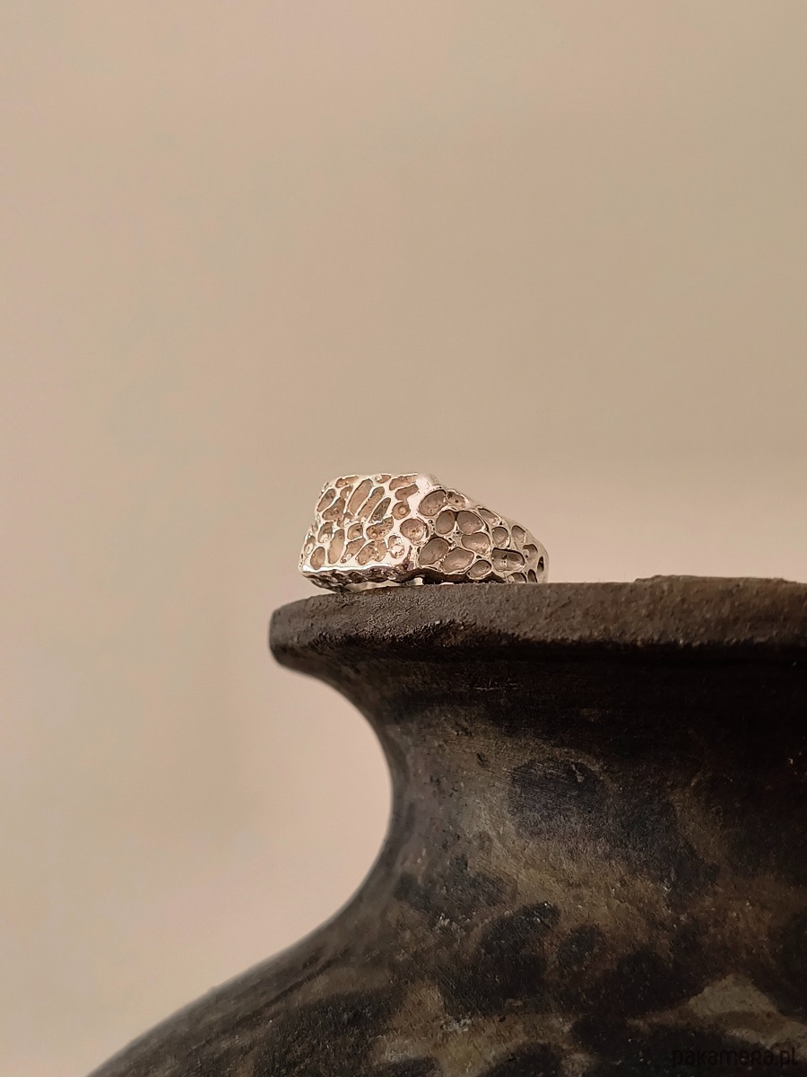 Pierścień - sygnet Kratery jest surowy, nieregularny i niezwykle klimatyczny.