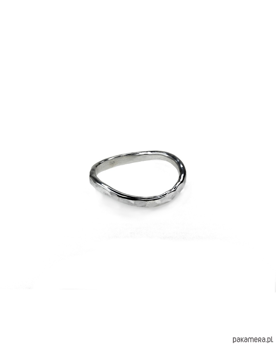 Skrzący się w słońcu, delikatny pierścionek SZADŹ No 4. Jego płynna, falująca forma cechuje się subtelną urodą.